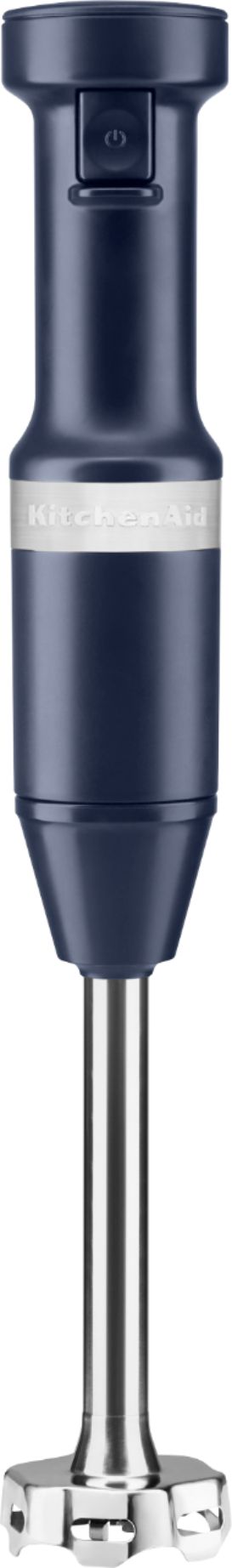 Designed for the perfect puree. This KitchenAid Variable Speed Corded Hand Blender features an 8" removable blending arm with 4-point stainless steel blade to blend everything from smoothies to milk shakes soups sauces and so much more. It is easy to use with the variable speed trigger switch and includes a US patent-pending removal pan guard to help protect your cookware. The 3-Cup BPA-Free Blending Jar with lid is great for individual blending jobs and can be used to serve direct from or to store your blended creation for a later use.