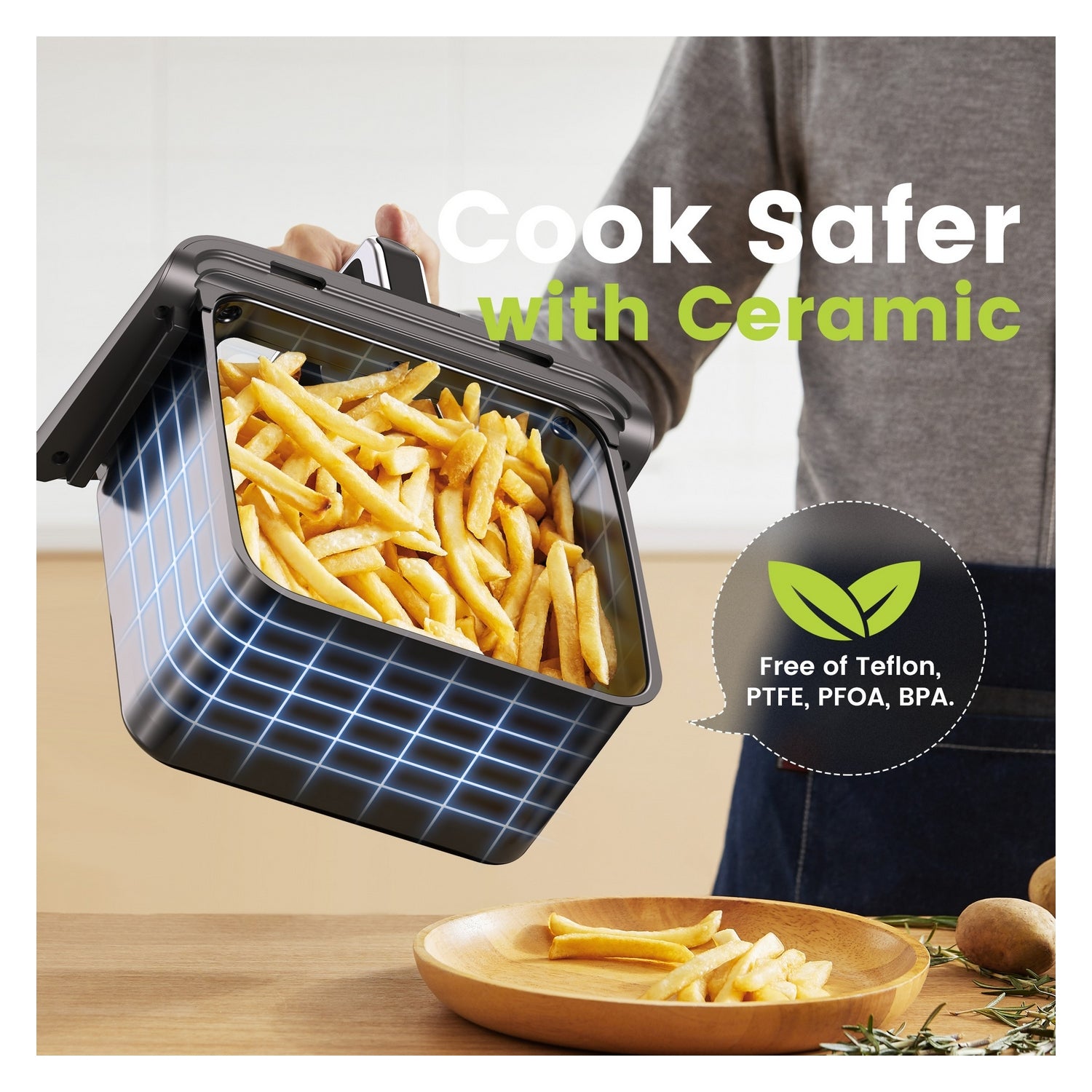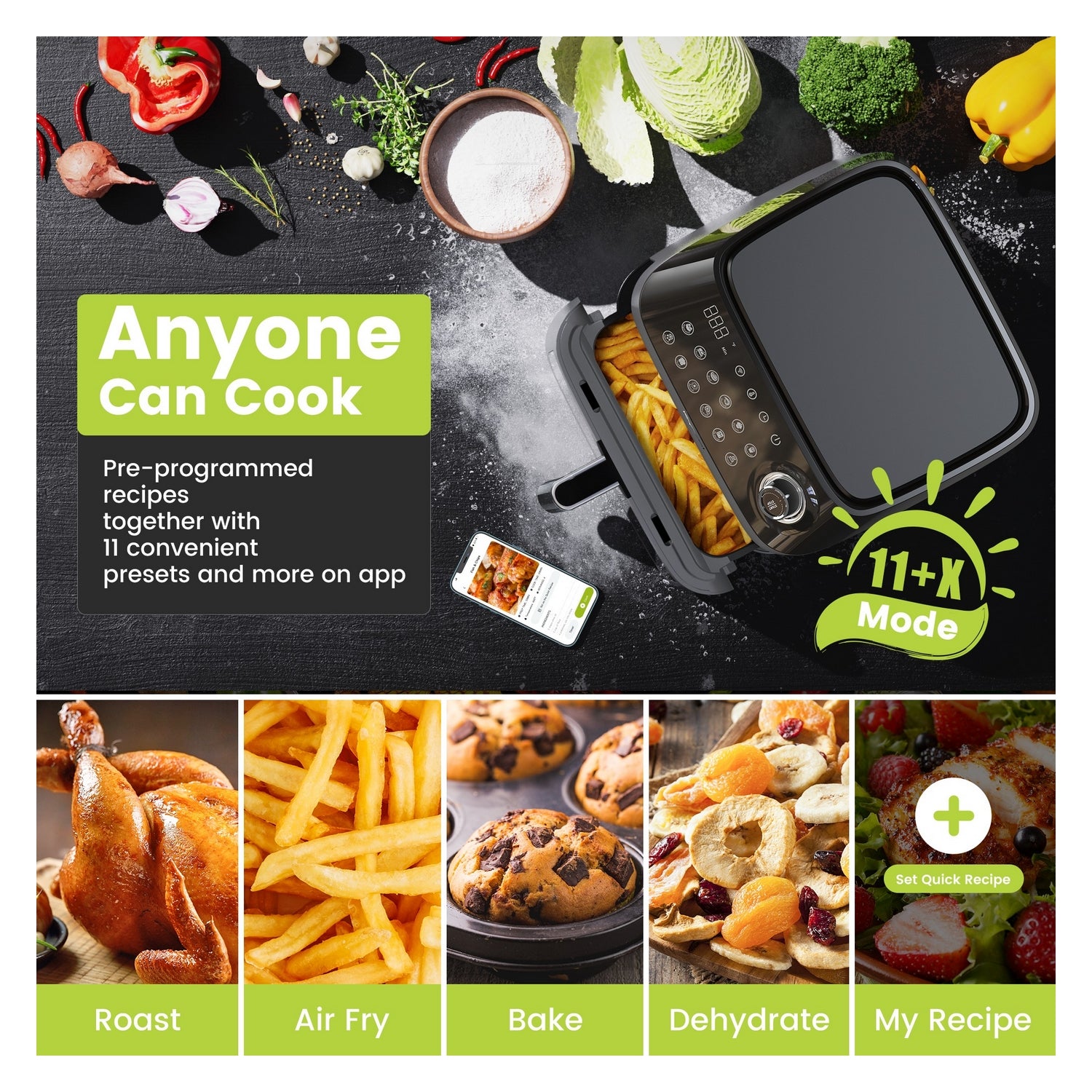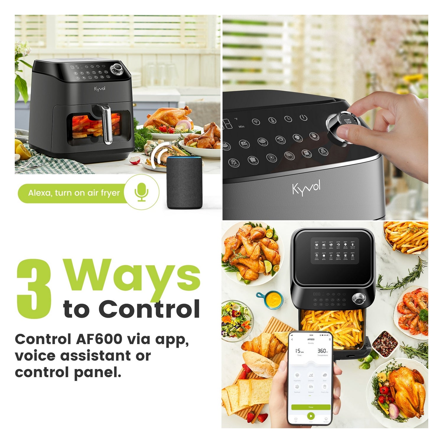 Prepare food with hot air instead of oil by using this Kyvol air fryer. It offers a temperature range from 105-400 degrees F to let you create dehydrated snacks or air-cook dishes with 85 percent less fat than traditional frying.