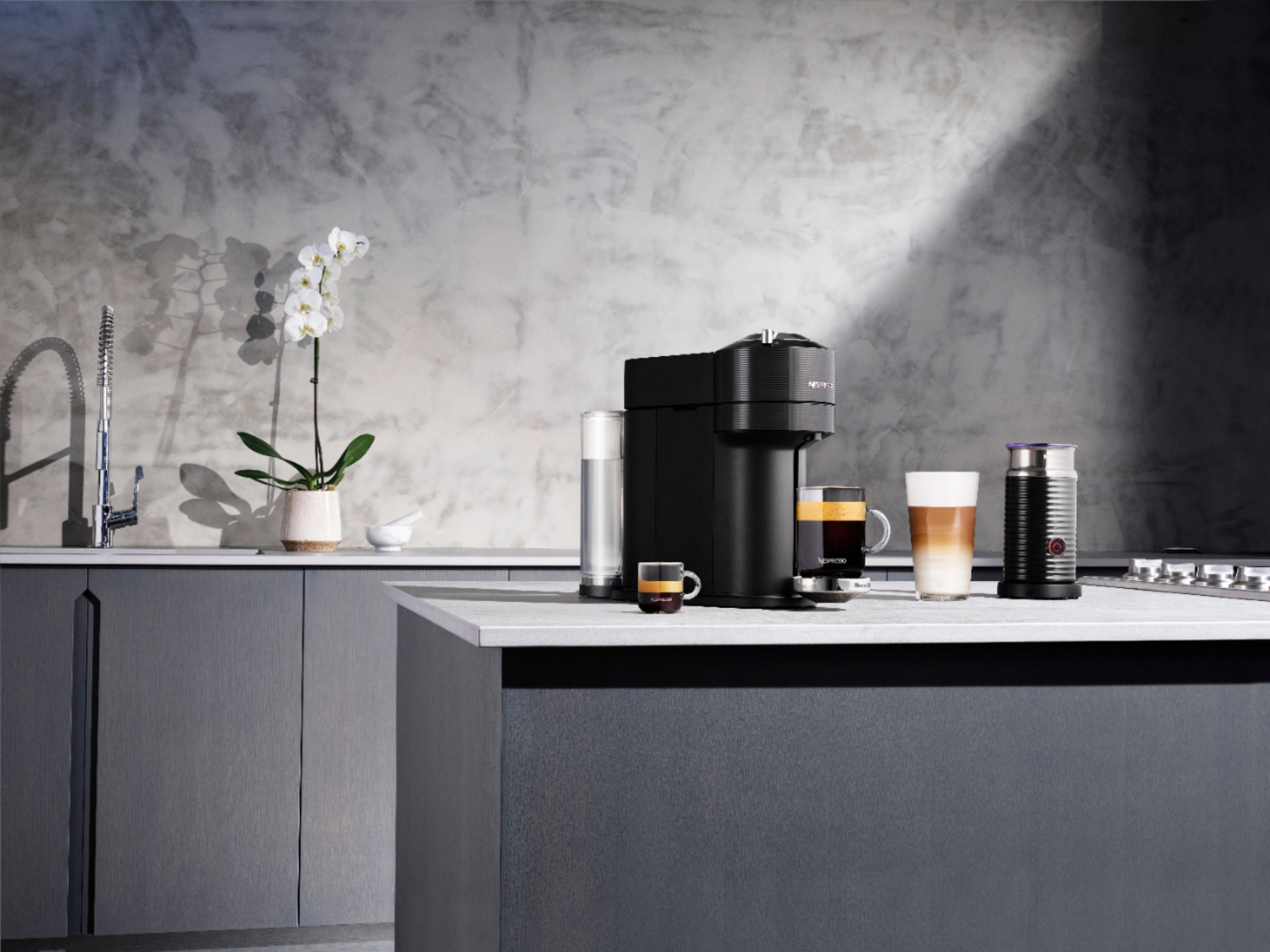 Vertuo Next takes the full range of Nespresso coffee styles even further with five cup sizes available to brew at the touch of a button. With a sleek new design made from 54% recycled plastics and stylish chrome accents, Vertuo Next will fit any kitchen and to go the extra mile, even connects to Wi-Fi and Bluetooth to ensure its software is always up-to-date.