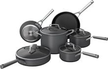 Easy-to-clean 10-piece setIncludes small 8-inch fry pan, medium 10¼-inch fry pan, small 1.5-qt saucepan with lid, medium 2.5-qt saucepan with lid, medium 3-qt sauté pan, and large 6.5-qt stock pot with lid. Plus the 10¼-inch fry pan and 3-qt sauté pan share a lid.