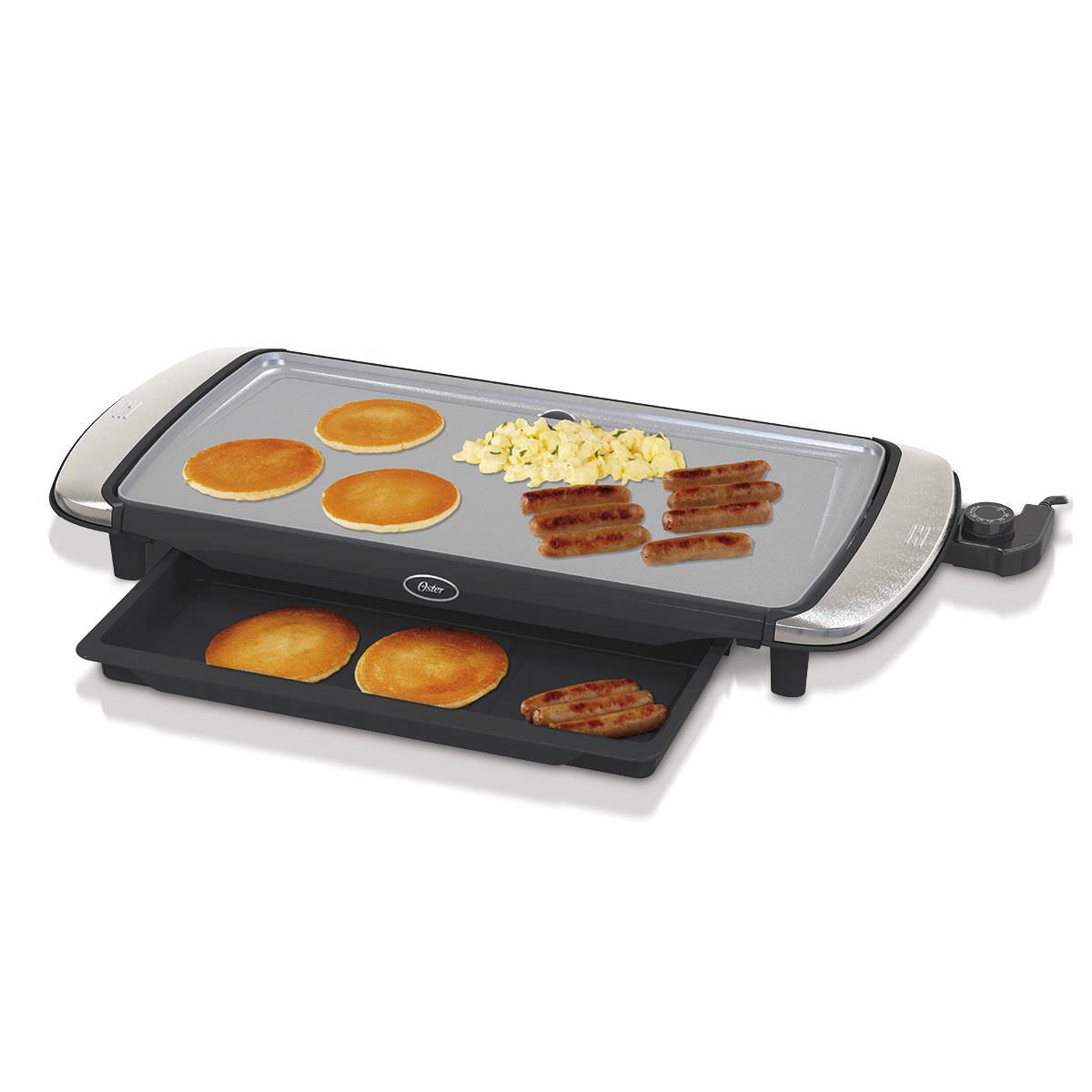 This electric griddle is designed with unique, innovative Titanium Infused DuraCeramic; non-stick ceramic coating to last 8 times longer than ordinary non-stick surfaces. This extra-durable, super-hard surface won't flake or peel. Natural Titanium Infused DuraCeramic; is PFOA and PTFE free and cooks up to 30% faster to save time and energy. Large 10" x 20" cooking surface makes it easy and convenient to prepare family meals. With the Oster brand, you can cook with passion and serve with pleasure.
