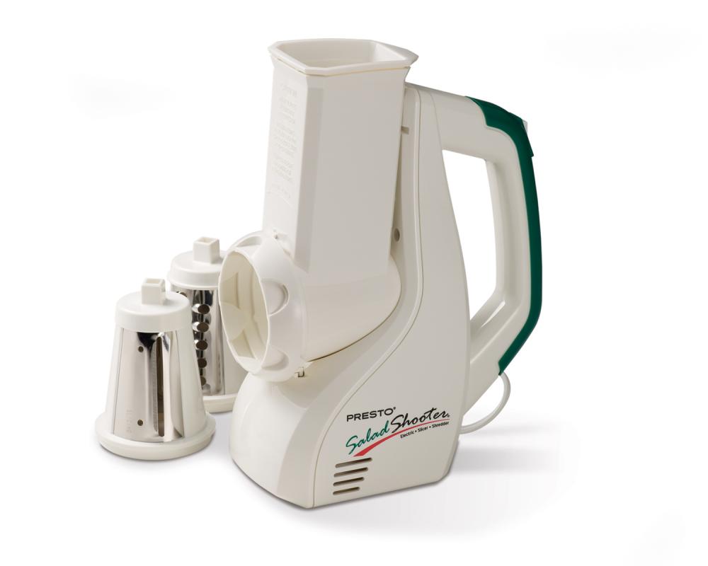 This efficient kitchen helper takes the work and mess out of slicing and shredding vegetables, fruits, cheese and more. Make salads, soups, pizzas, tacos, desserts and more. Shoot one ingredient after another right where you want. There are no extra bowls to clean. Simple to use! Interchangeable slicing and shredding cones slip right in. Base easily wipes clean. All other parts are dishwasher safe. Its compact size makes it easy to store most anywhere, even in a drawer.