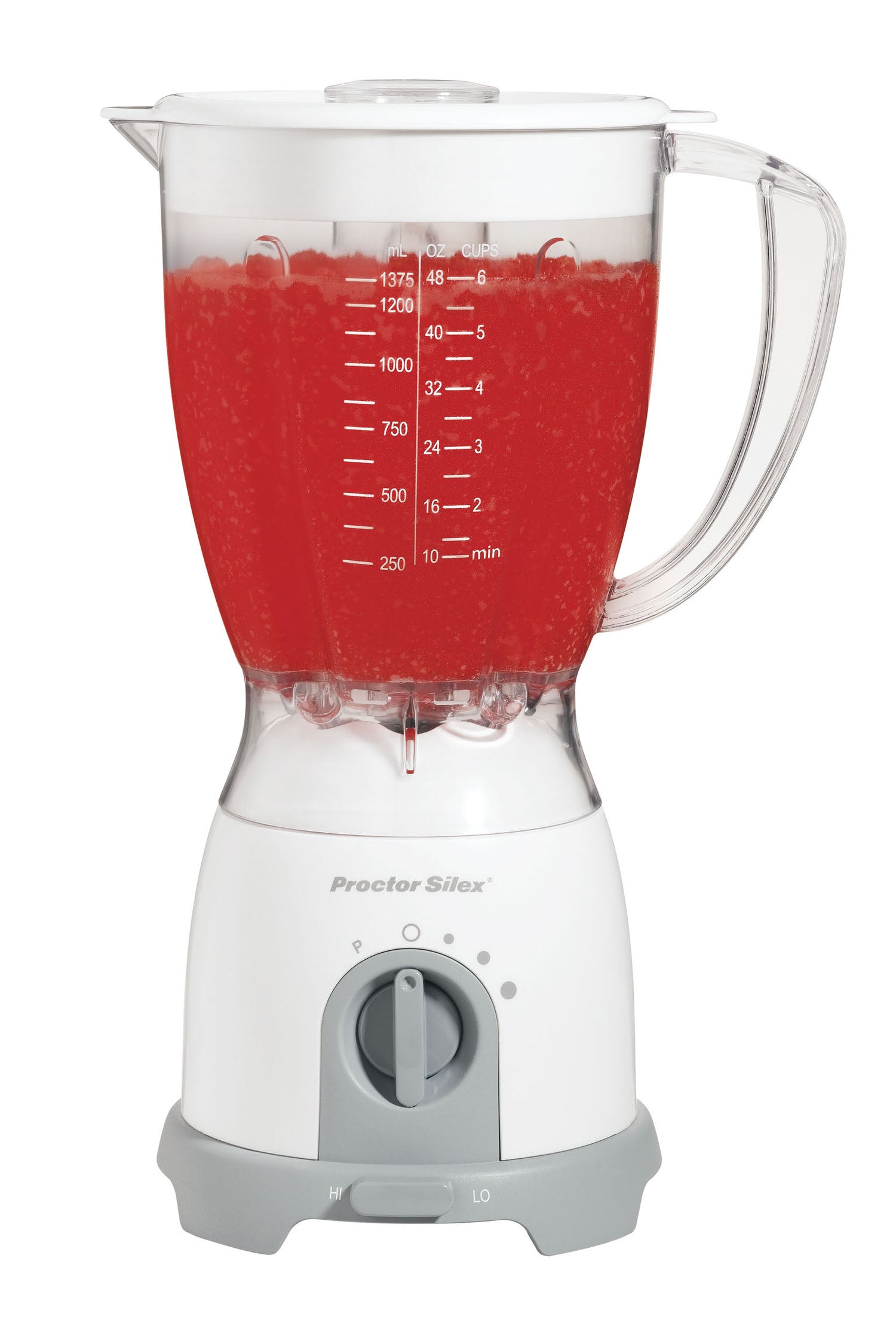 Jar flips over for storage. Large 48 oz. jar is dishwasher safe. 8 speeds. 375 Watts. Stainless steel blades.