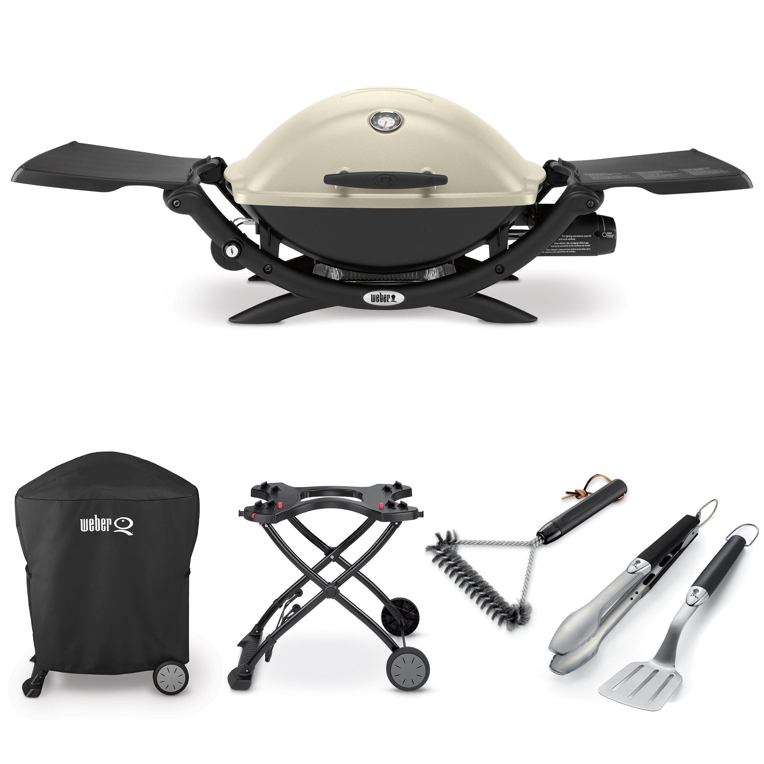 The Weber Q2200's taller lid profile allows you to grill a larger chicken or a roast. The grill features a high-performance cooking system, electronic ignition for reliable lighting, and an infinitely adjustable burner valve w/ high-quality regulator. Kit includes a Weber 2-piece Stainless Steel Tool Set, a 12'', Weber 3-Sided Grill Brush for keeping grill grates clean of food debris, a Weber Q Portable Cart for easy grilling convenience and a Weber Q Grill Cover that protects your grill from the elements.