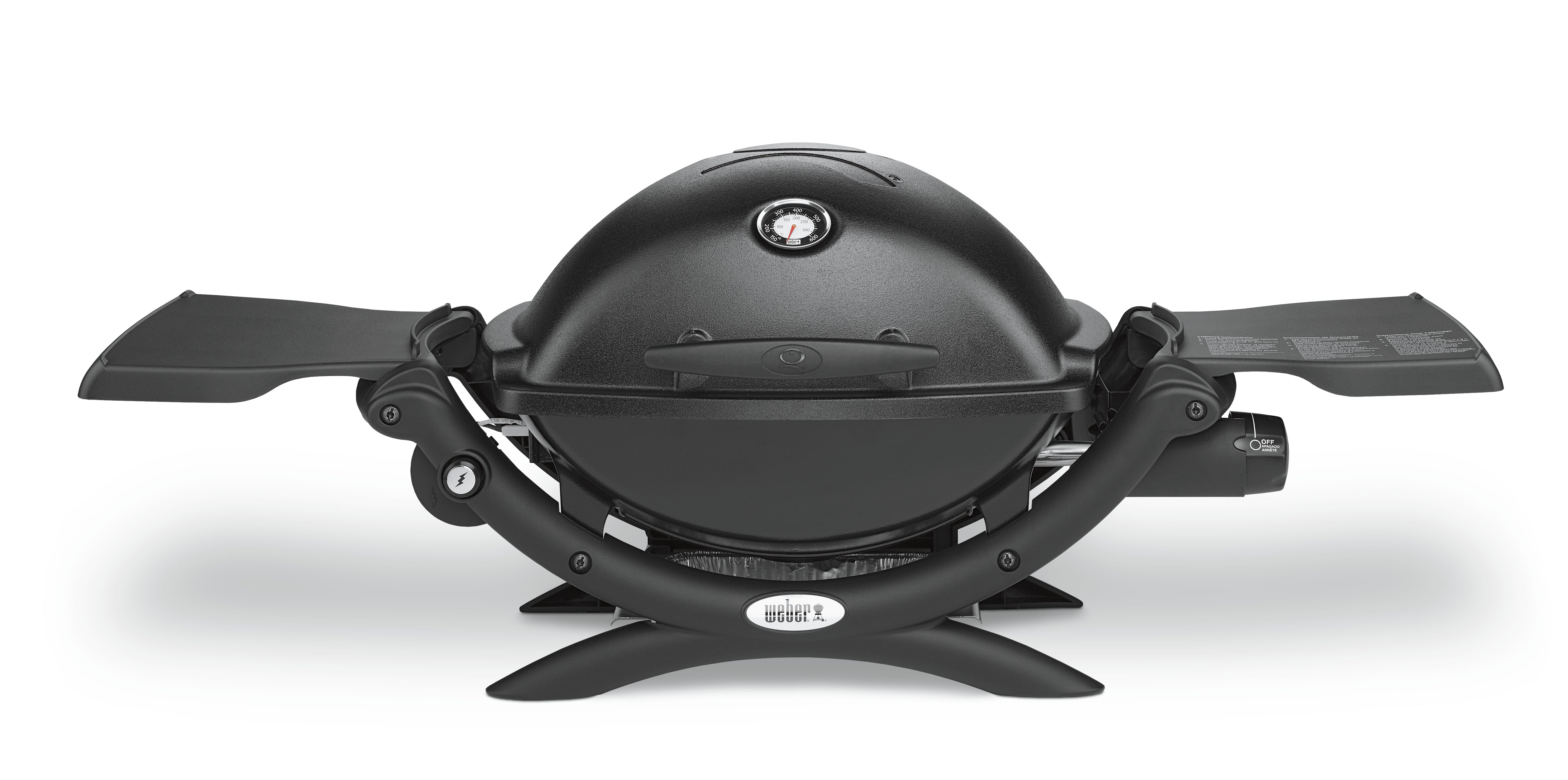 The Weber Q1200 gas grill is lightweight (24 lbs) and packs plenty of power. Perfect for camping and tailgating. Features a high-performance cooking system (8,500 BTU-ph/input), 189 sq. in. total cooking area, electronic ignition for reliable lighting and an infinitely adjustable burner valve with high-quality regulator. Cast-aluminum lid & body, large weather-resistant lid handle, porcelain-enameled cast-iron cooking grates, and 2 durable, tuck-away work tables. Removable drip tray allows for easy clean up. Std 14.1 oz LP cylinder (sold separately).