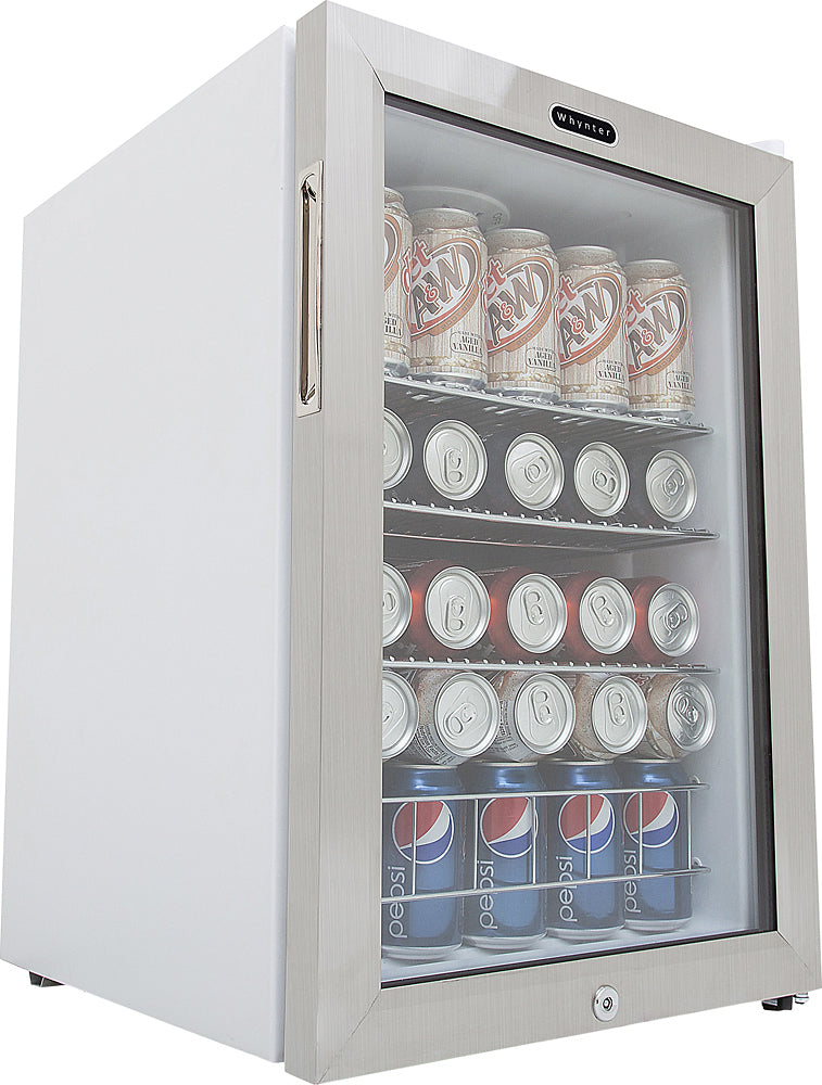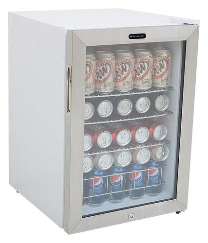 This Whynter BR-091WS refrigerator features 3 slide-out wire shelves to hold up to 90 cans, so you can stock up on plenty of your favorite beverages. An internal air-cooled system with fan-forced circulation helps maintain an ideal temperature.