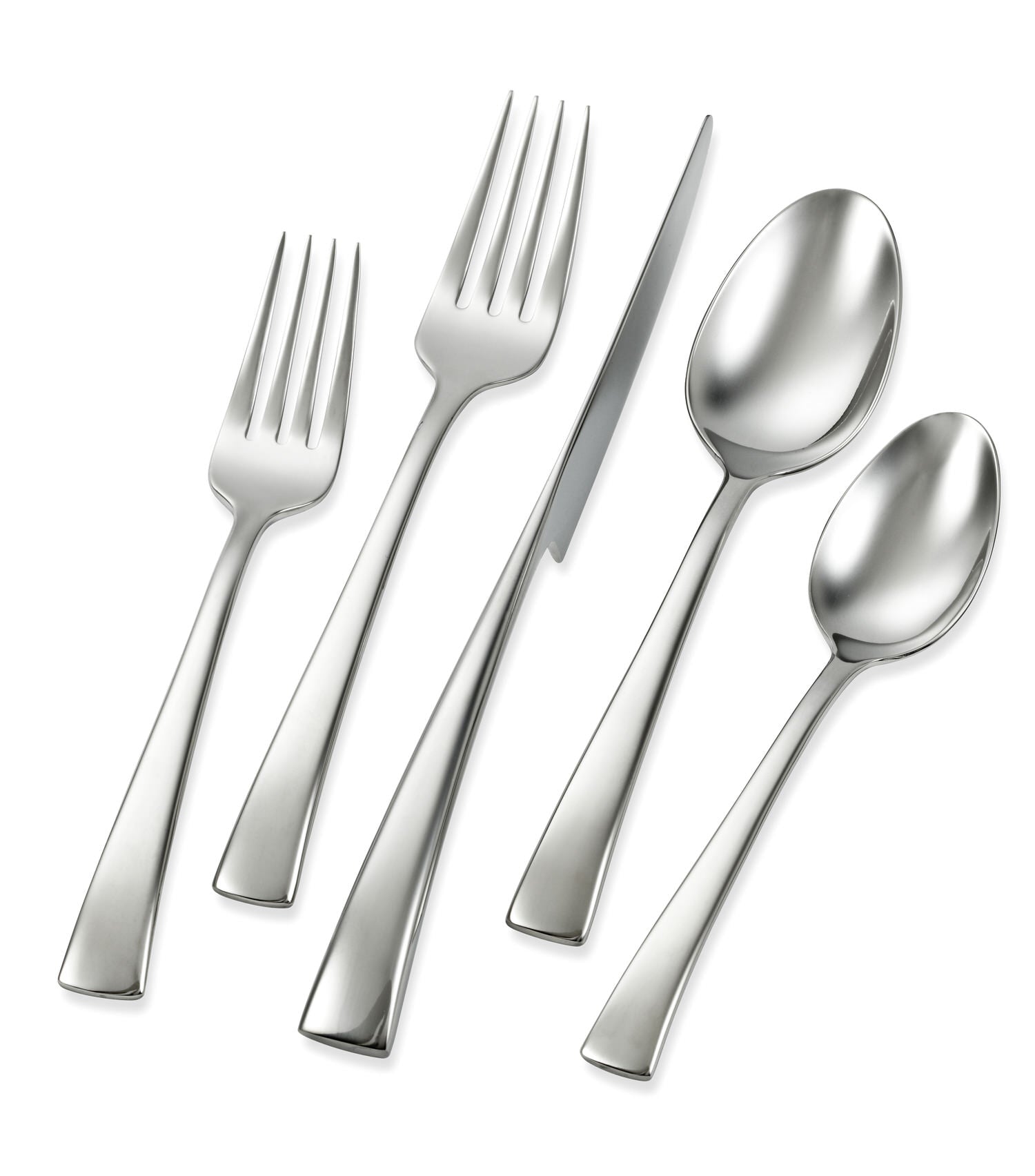 18/10 Stainless steel construction. Forged dinner knives. Resistant to corrosion. Brilliant finish. Serves up to 8. 8 Dinner knives. 8 Dinner forks. 8 Dinner spoons. 8 Salad spoons. 8 Teaspoons. Serving fork. Serving spoon. Slotted serving spoon. Butter knife. Sugar spoon. Dishwasher safe.