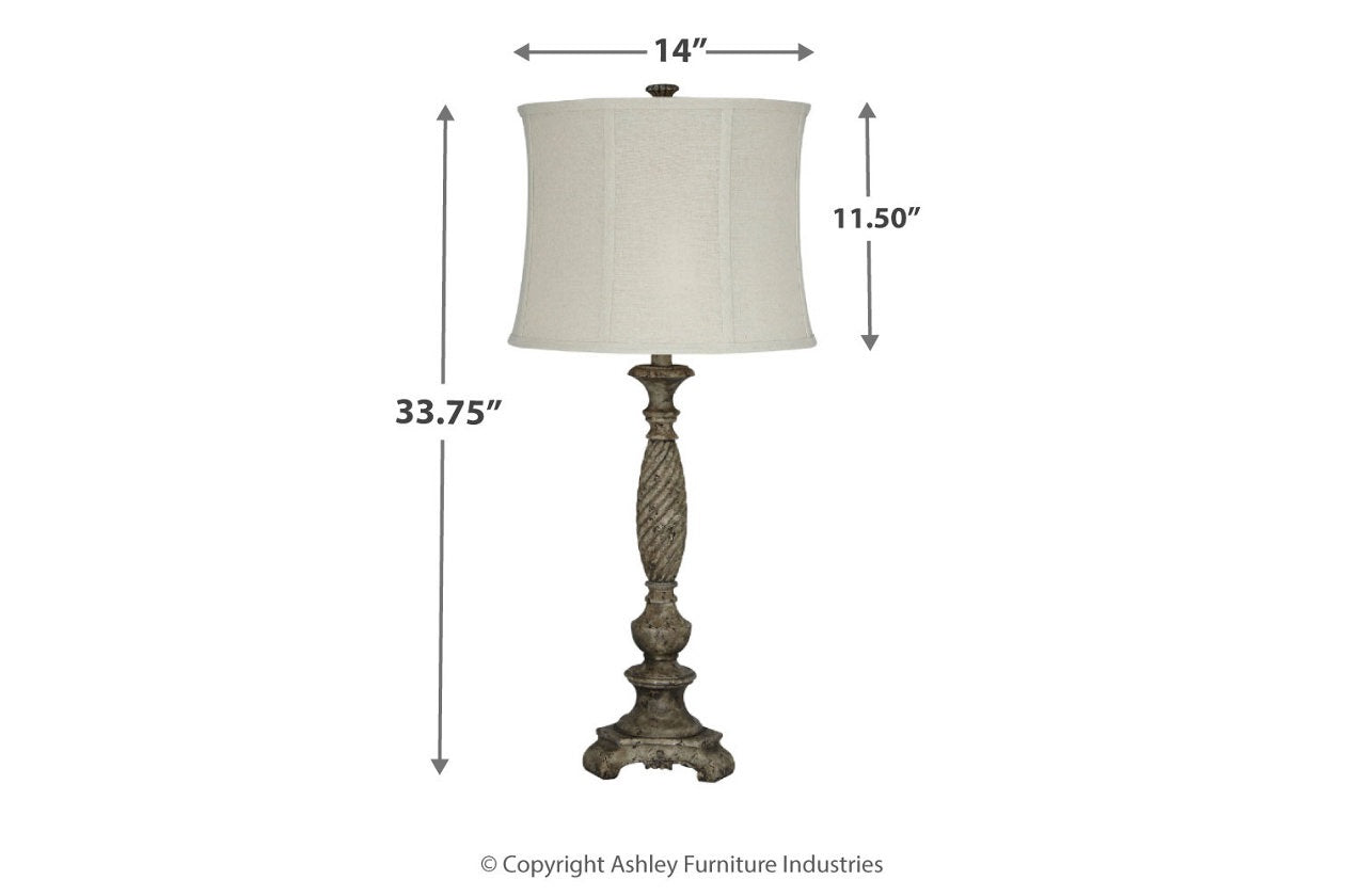 Age of beauty. Sporting a lovely patina distressed effect, Alinae table lamp proves that some things do get better with age. Structured concave shade adds fabulous flair.