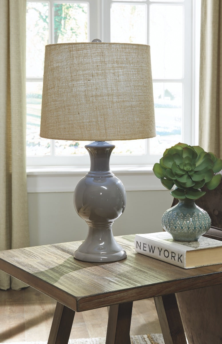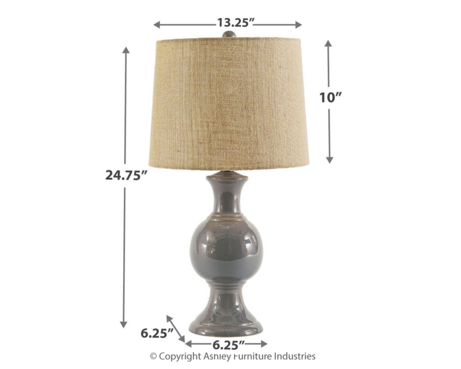 This table lamp is a casual yet attractive addition to your home. Light shines down beautifully onto the elegantly curved base and throughout your room. Lustrous glazed ceramic allures with a handsome gray hue.
