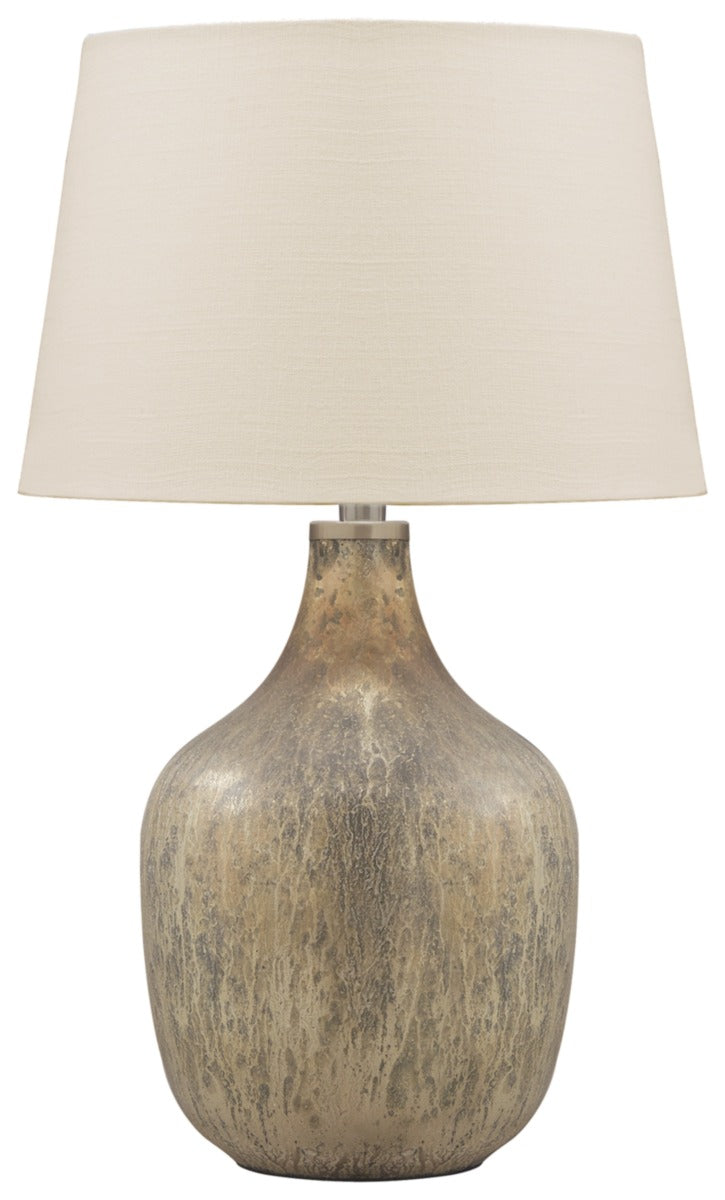 Evoke a vintage vibe in a thoroughly modern way with this glass table lamp. The gray-blue and light goldtone of the mercury-glass finish reflects a primitive aesthetic juxtaposed with the contemporary jar shape of this lamp. Add texture, interest and a certain je ne sais quois to your space for a look that’s all your own.