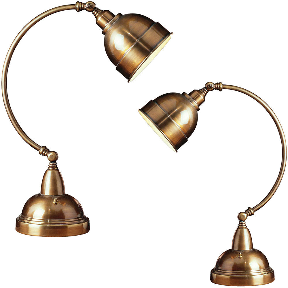 Crafted in a satin brass finish, these desk lamps from the Plato Collection are beautiful transitional pieces. Ideal for your desk, night tables, or favorite reading space, they are adjustable and have an on/off switch at the base.