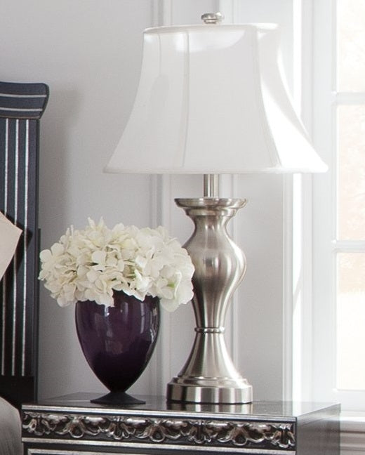 Brushed-finish and bright white-what a stunning combination. Add to that the countless curves and you've got one remarkable table lamp. Neutral in color and classically shaped, can be paired with an array of color schemes and aesthetics.
