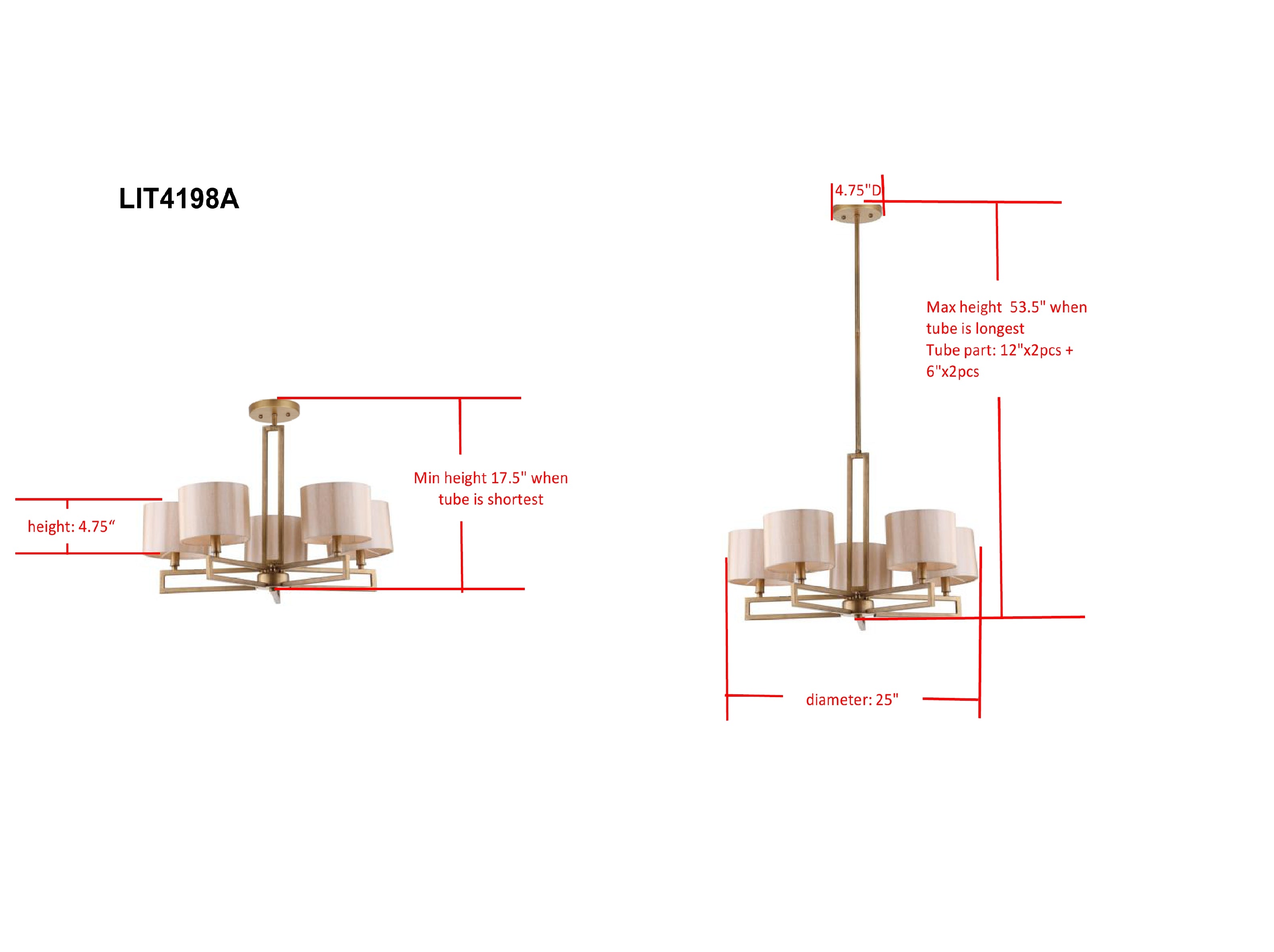Safavieh Renford 5 Light Antique Gold 25 Inch Dia Adjustable Chandelier 25" x 25" x 17.5 - 53.5" Gold