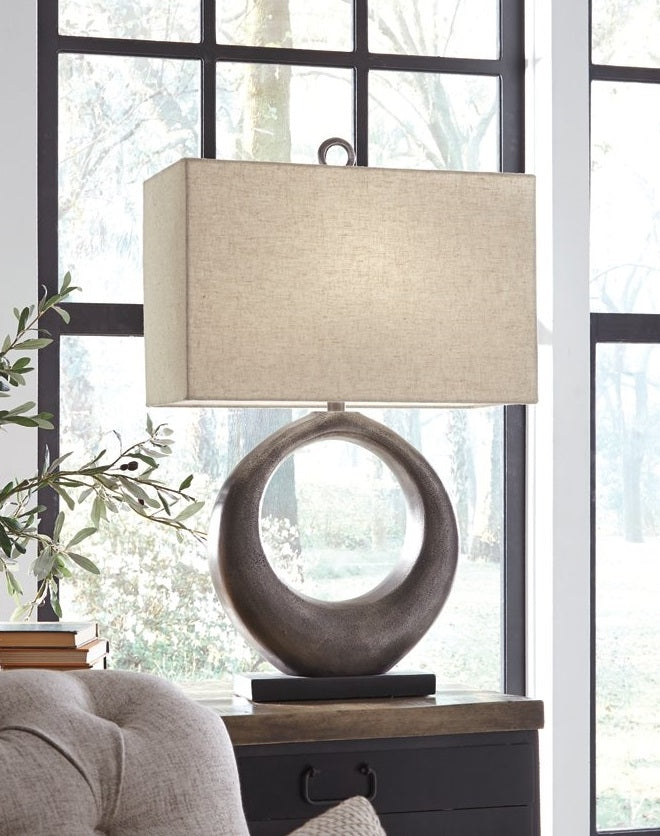 Part sculpture and totally beautiful, this table lamp lets you delight in the art of lighting. The aesthetic may be contemporary and refined, but its antique silvertone cast aluminum infuses a raw element for beautiful balance.