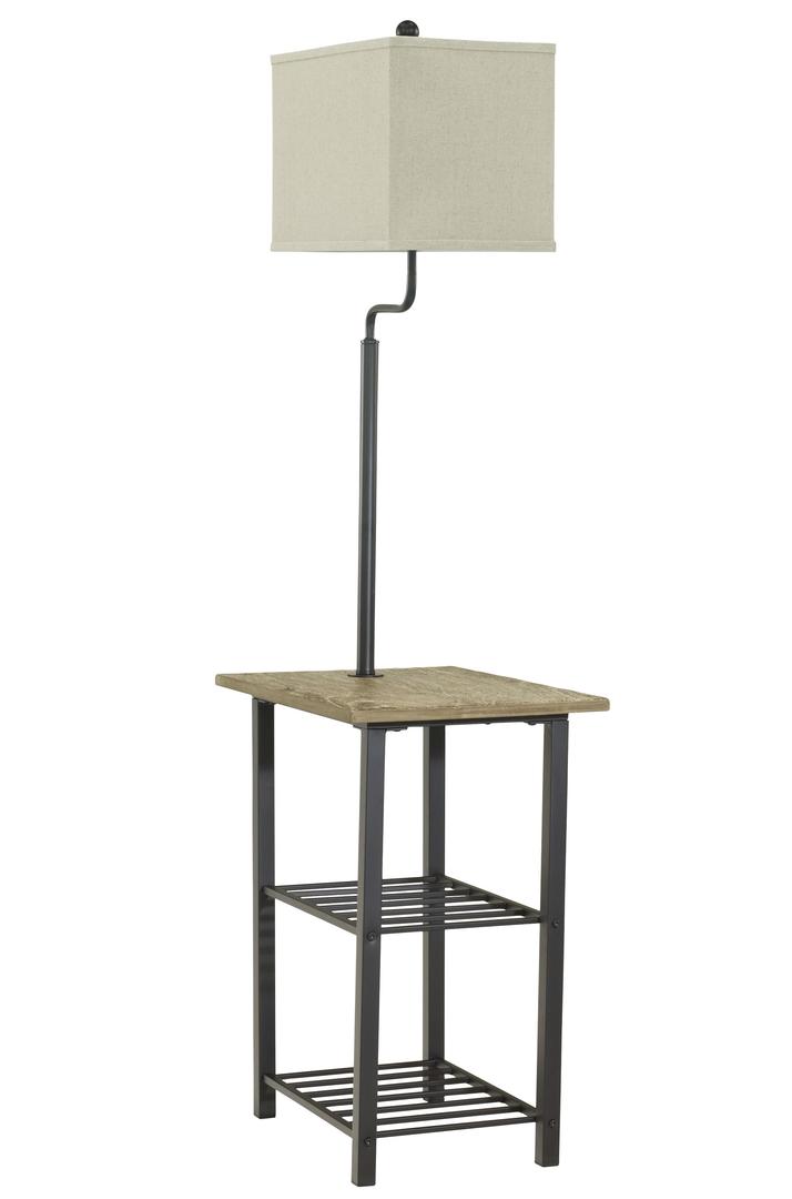 This metal tray lamp seamlessly integrates tabletop and dual rack space with an overhead lamp, putting multifunctional furnishings in a new light. What an especially bright idea when you're tight on space.