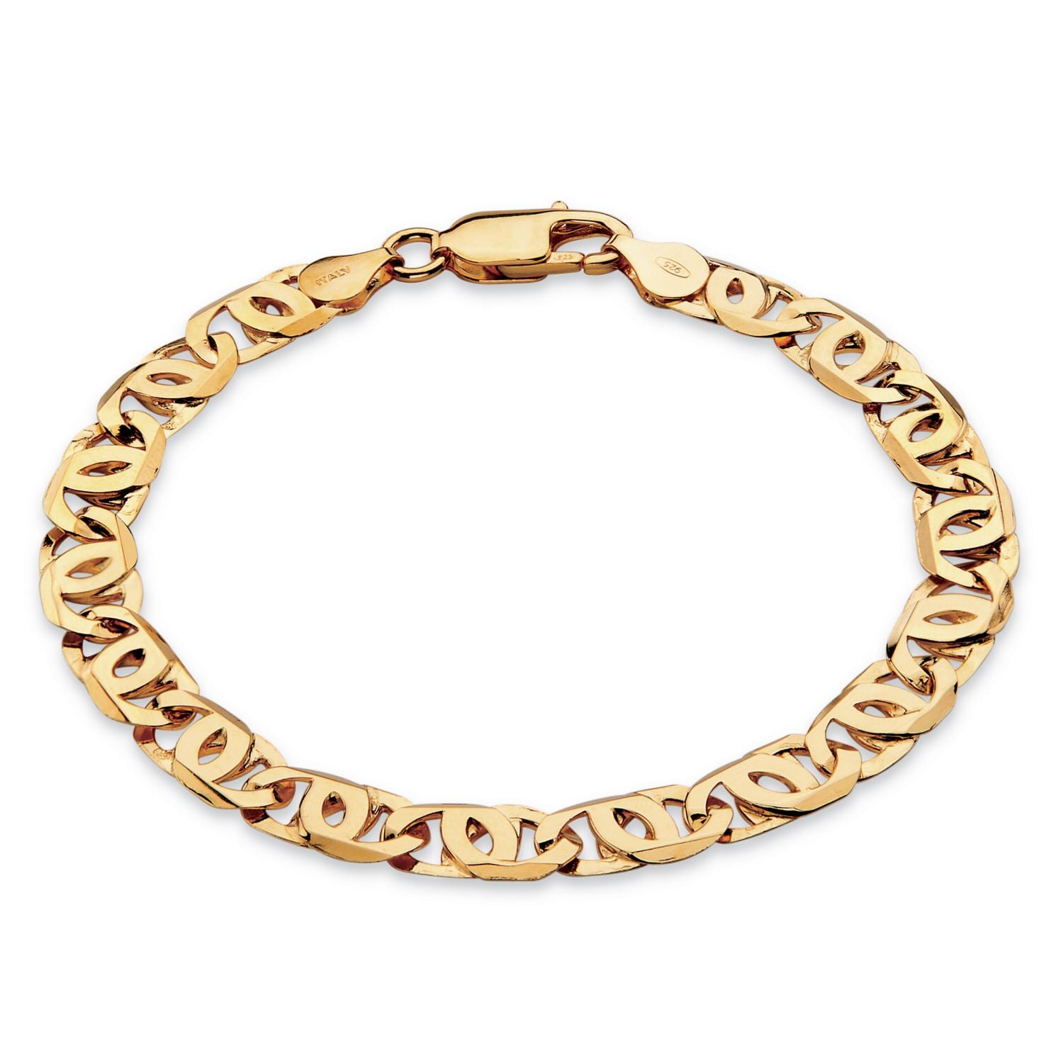 Classic and timeless, this bird's eye interlocking link bracelet will always be in style. Impressive all by itself, or with his favorite watch, this strong statement piece is 8" in length and a substantial 10 mm width. Crafted in 14k gold over sterling silver.