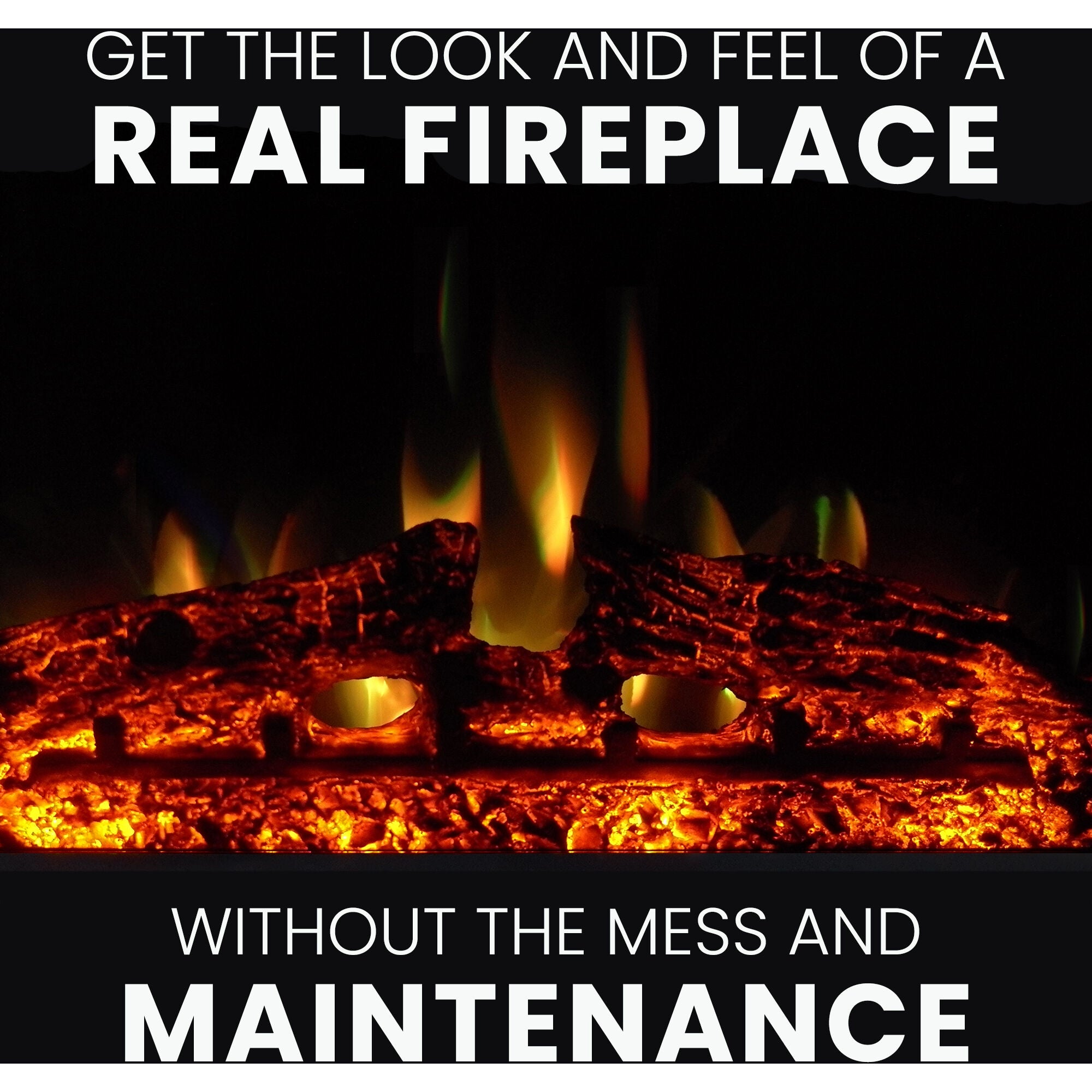 • Sawyer industrial electric fireplace mantel with deep and enhanced log display and 5 color changing flames