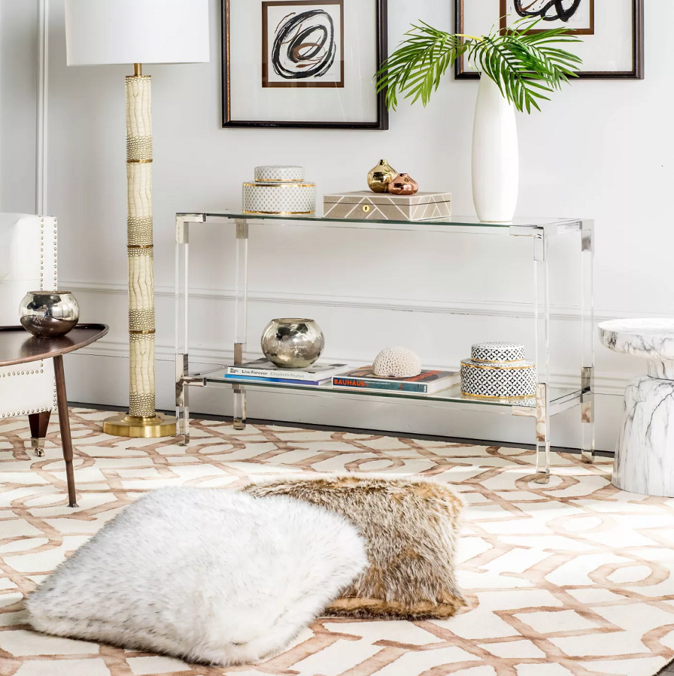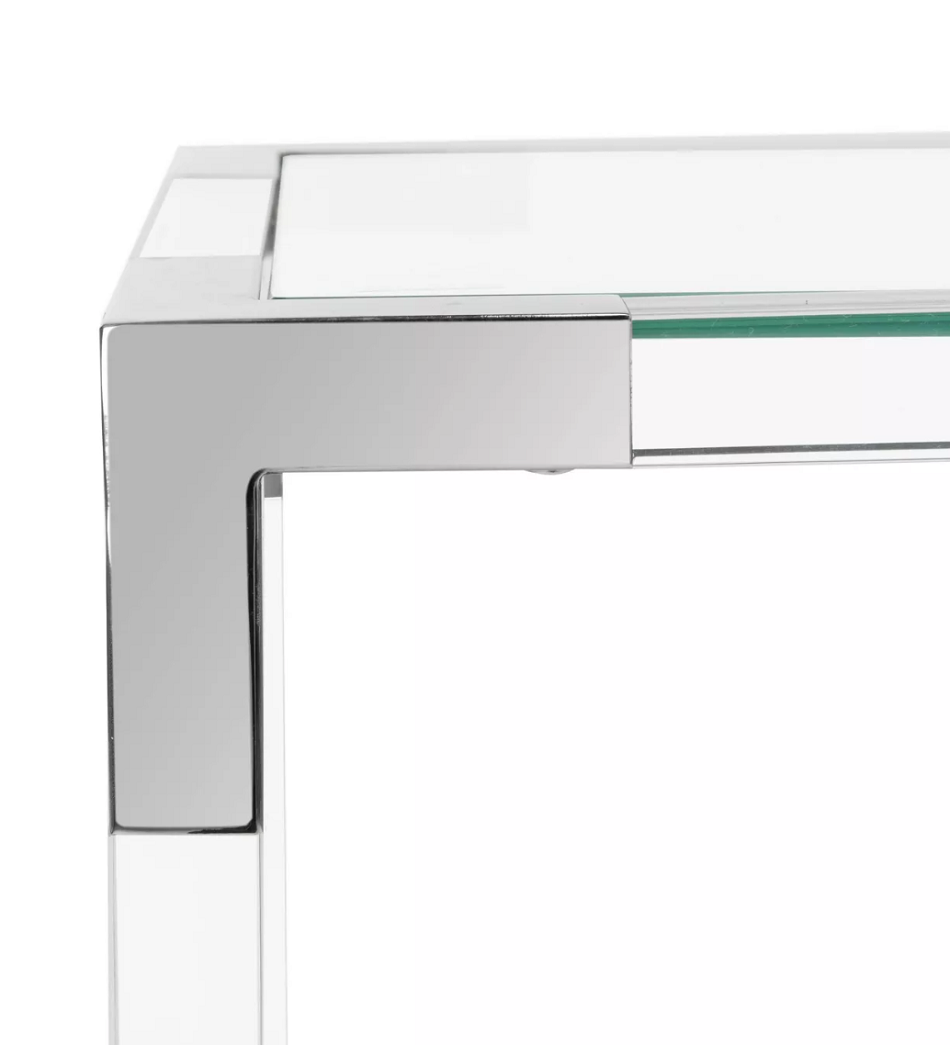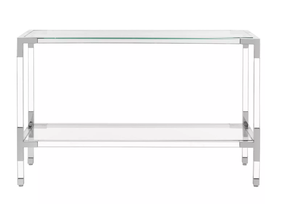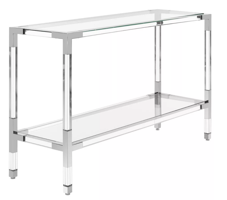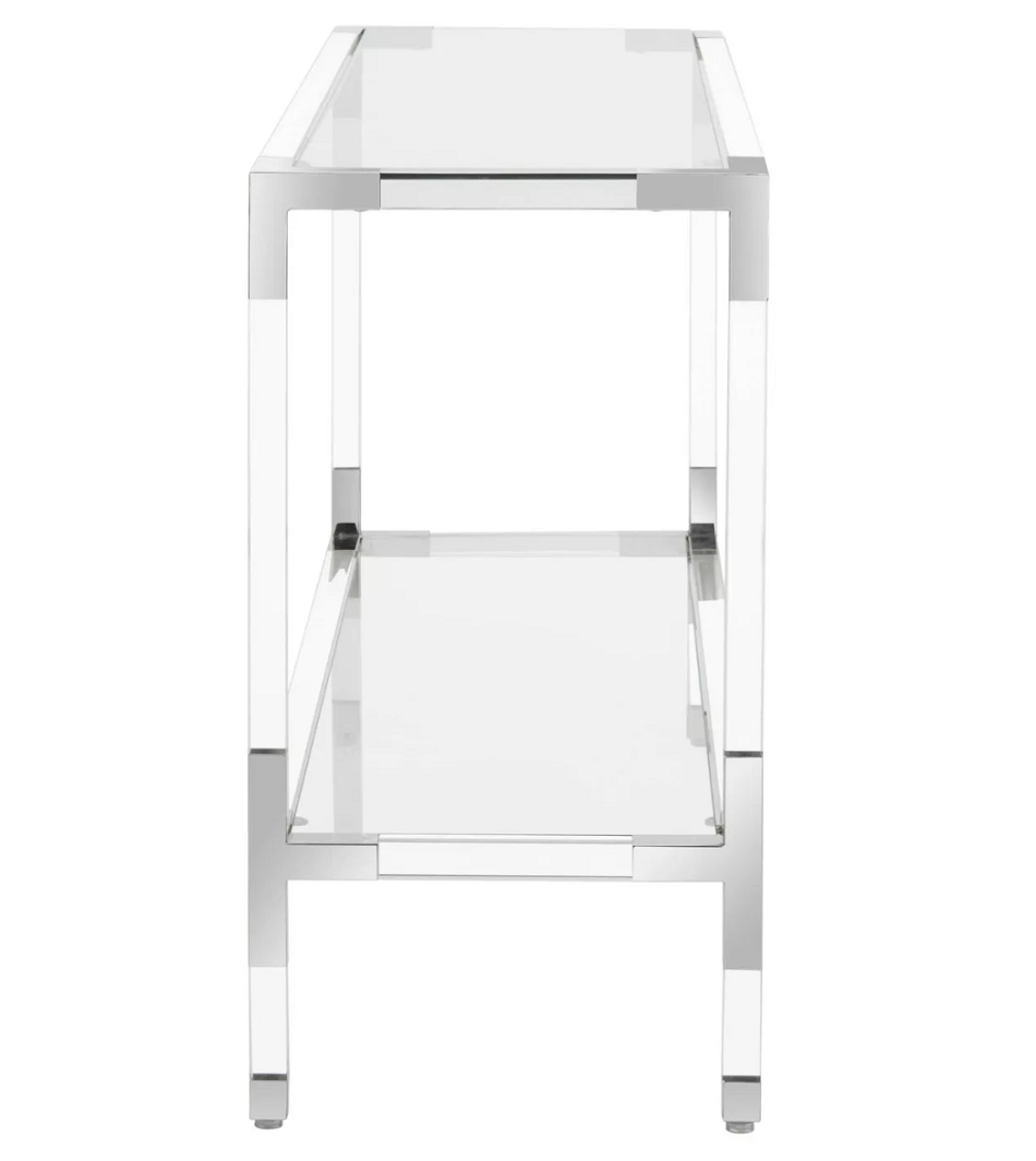 This iconic contemporary console was designed to recall the la dolce vita style of an Italian film director’s Rome apartment. Glass, stainless steel, chrome and acrylic create a luxurious materiality that radiates exceptional living and aesthetic prowess.