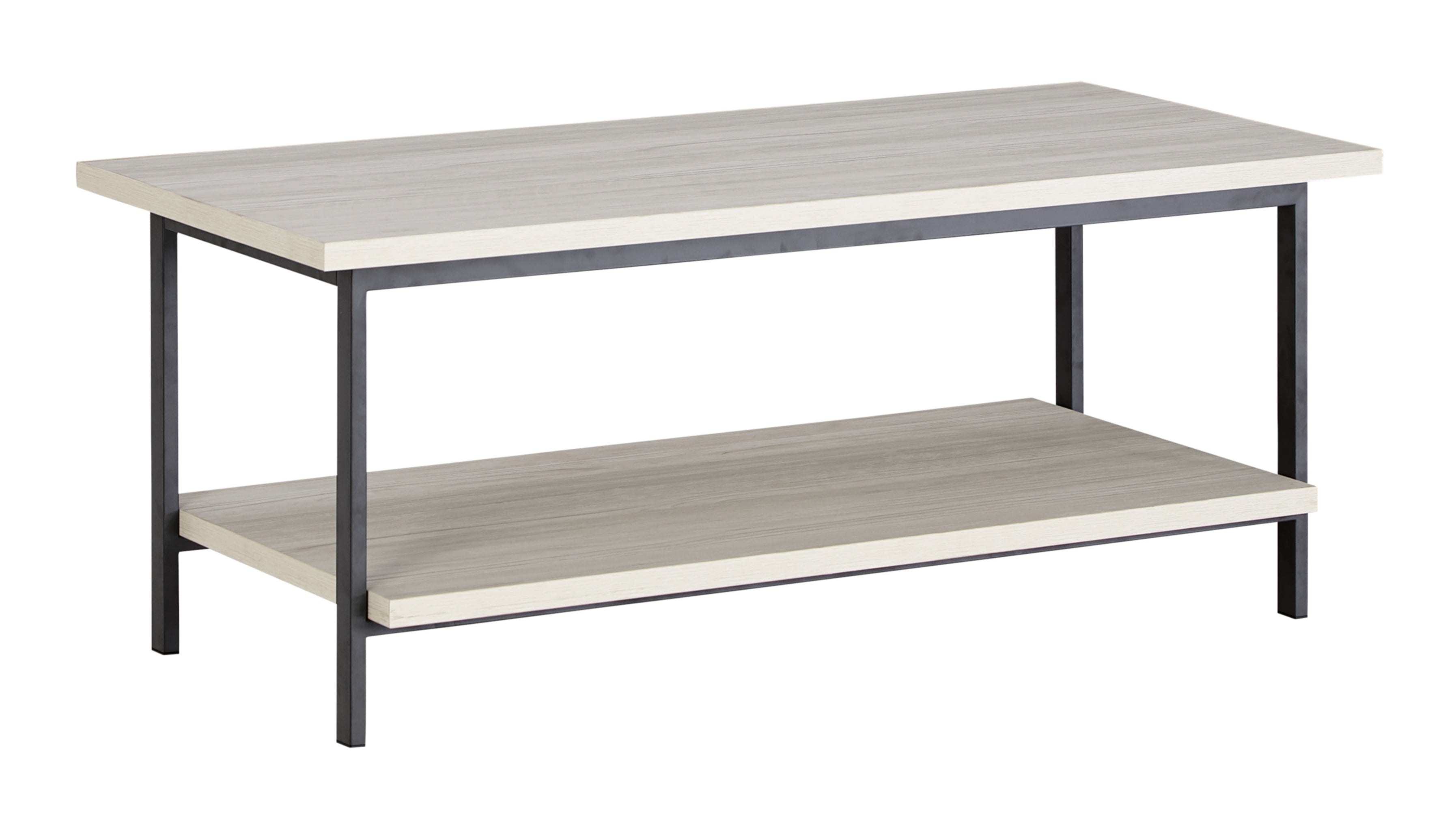 Entertain with ease with the casual, contemporary Bayflynn coffee table. Designed for the modern tastemaker, the minimalist design wows with metal legs and a laminated surface with a whitewashed effect. A lower display shelf provides ample space for books and baskets, or for showcasing your special decor accessories.