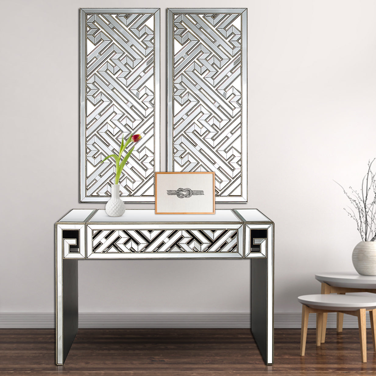 The Becket Wall Mirror is a statement piece like none other. Fully mirrored, this stunning conversation piece is accented with lines that twist and turn, creating a maze-like effect that will leave you spellbound. The only thing that can make the Becket Wall Mirror even greater would be to pair it with the matching console table. Do you dare? The Becket Console Table is a bold work of art that deserves a space in your home. At just over 35 inches in height and 51 inches in width, the Becket Console Table is mirrored virtuoso ideally suited for a contemporary paradise. Pair it with the matching wall mirror and be the envy of the neighborhood.