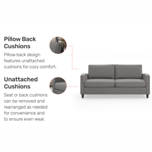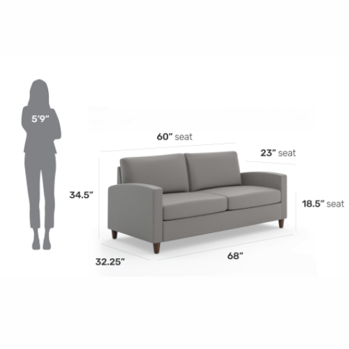 Comfortable plush cushions and a fresh, modern look will make the Blake Sofa the focal point of your living space. Clean lines, thin, contoured arms, and neutral fabric give the design a fresh, modern look. A small footprint makes it the perfect choice for small apartments or homes. And thanks to it's knock-down design, with back that folds down and removable legs, it's easy to move into your home and assemble.