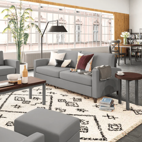 Whether used on its own or as part of a larger seating arrangement, you're adding comfort and style with this Homestyles Blake Sofa. Perfect for any space from a small apartment to a great room, it delivers clean lines, contoured slope arms, and a neutral steel colored fabric. Supportive, pillow-back cushions provide superior comfort, and the hardwood frame creates a solid foundation.