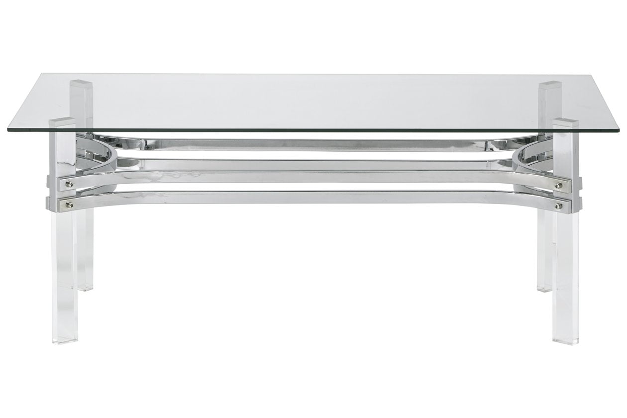 If you long for more transparency, you're sure to love this coffee table. Pairing a clear glass tabletop with see-through acrylic legs, it's a mastery in minimalism. Chrome-tone stretcher takes the contemporary vibe to the max.