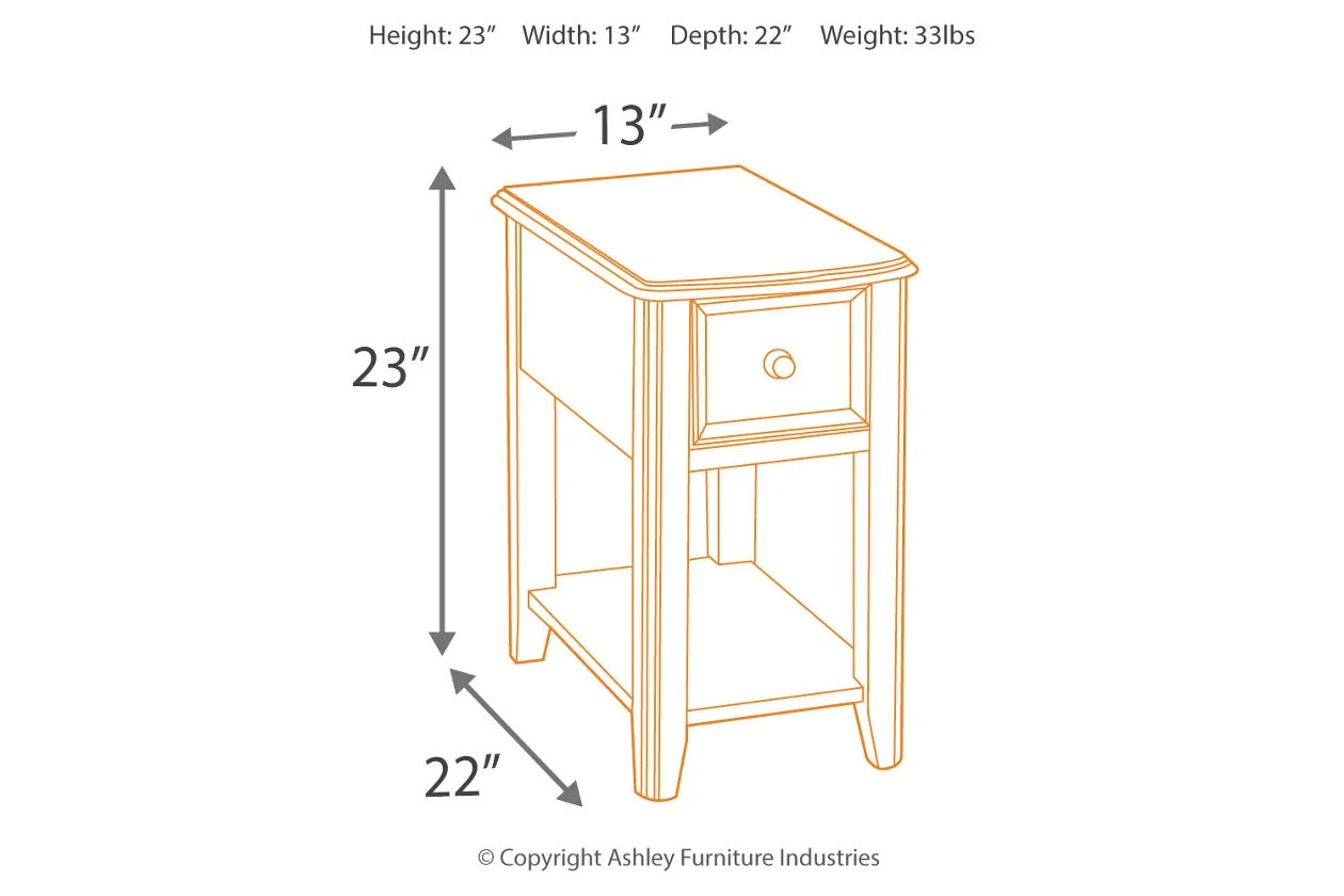 With its tapered legs and sophisticated profile, the Breegin chairside end table has the corner on contemporary style. Sleek and slim, it’s just enough furniture to complete your space—with a deep drawer with removable tray for handy storage.