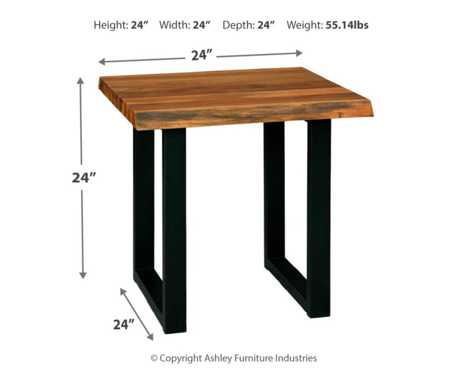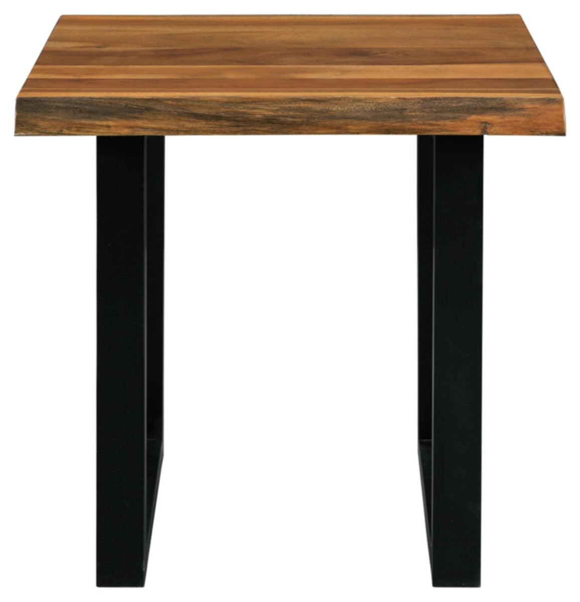 Enjoy the authentic look of “live edge wood furnishings minus the hefty price tag with this striking end table. Rich, natural wood finish top, crafted with acacia veneers, is a look with real staying power. The dramatically cool “sled legs add a contemporary vibe perfect for your urban loft or boho abode.