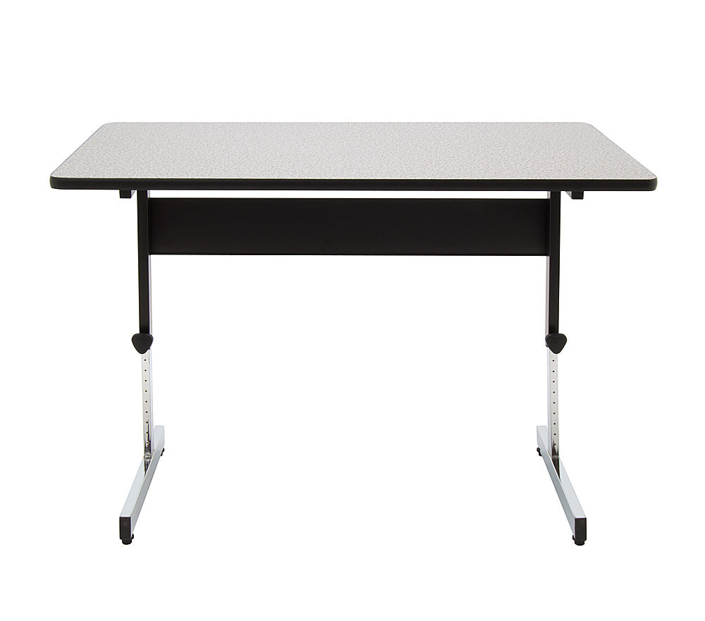 The Adapta Desk by Studio Designs in handsome Black/Spatter Gray is versatile enough to suit any job at work or in the home. The desk adjusts in height from 22 to 32 inches in 1" increments. Its durable construction includes a sturdy base with floor levelers for stability. The attractive wood surface supports heavy office items like computers and books thanks to its 1" thickness and T-mold edge band. The desktop is 47.5''Wide x 30'' Deep.