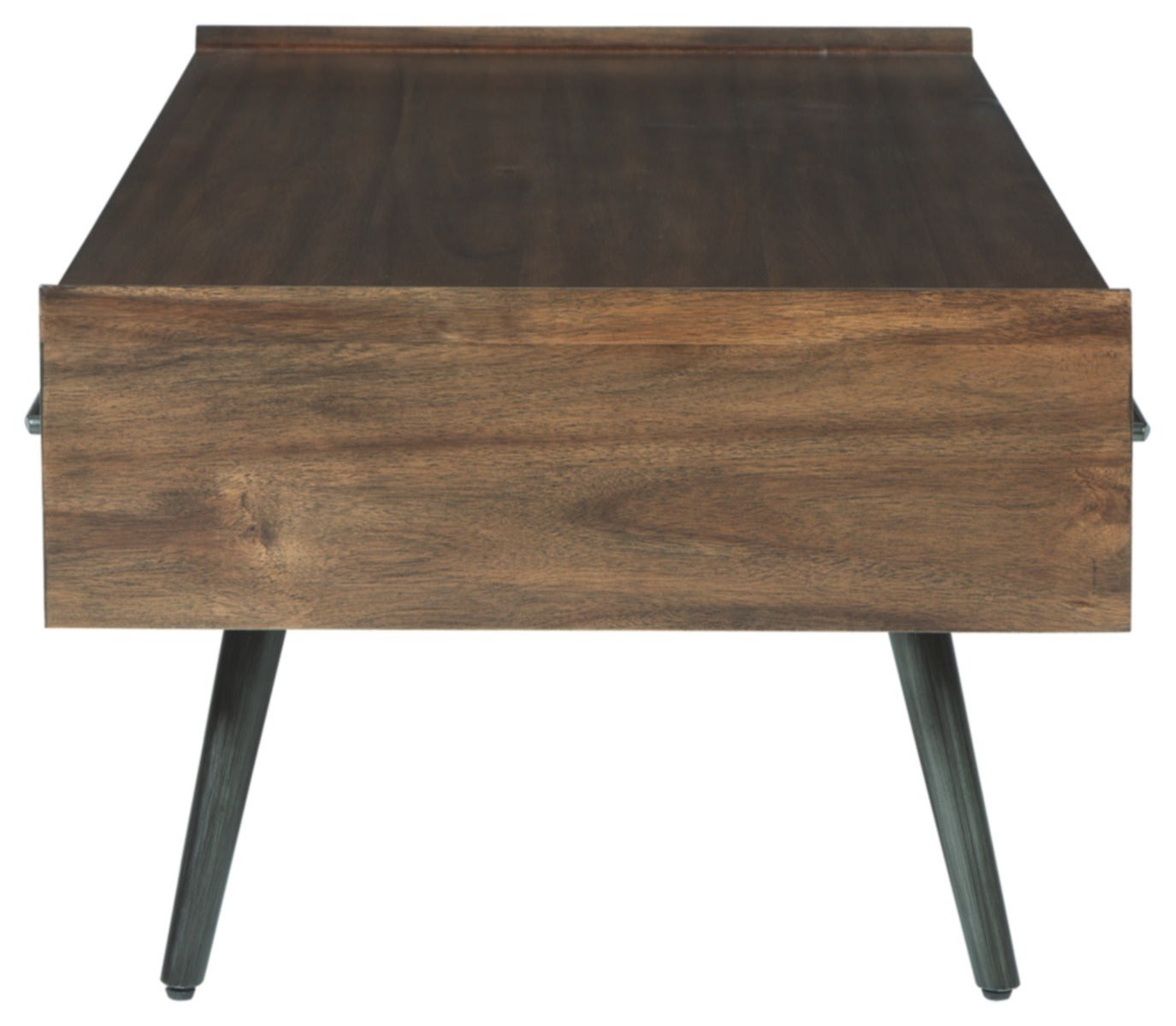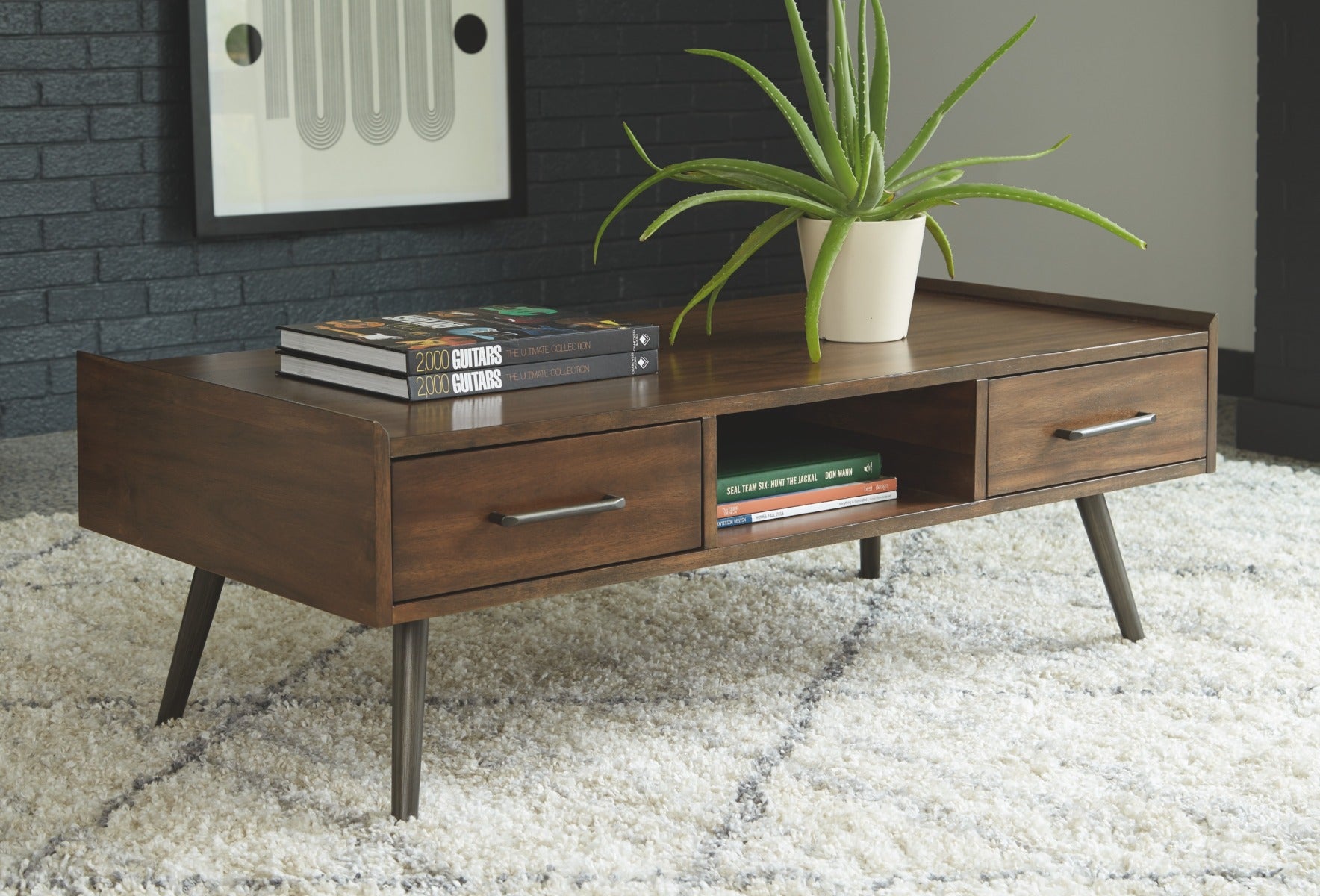 Retro yet relevant. This coffee table is a great case of mid-century influence with cool, contemporary flair. Ultra-linear tabletop is supported by canted round metal legs for a signature look that reflects your eye for beautiful things.
