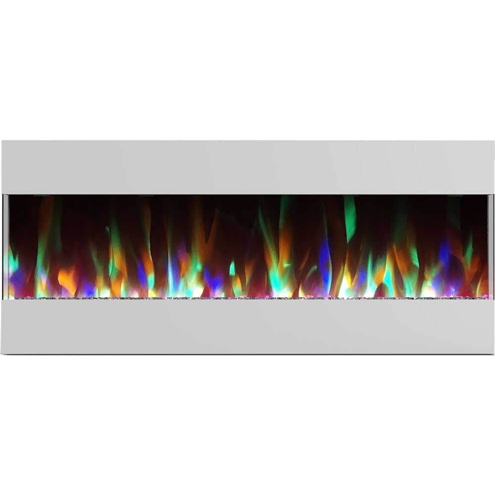 Cambridge 50 In. Recessed Wall Mounted Electric Fireplace with Crystal and LED Color Changing Display, White