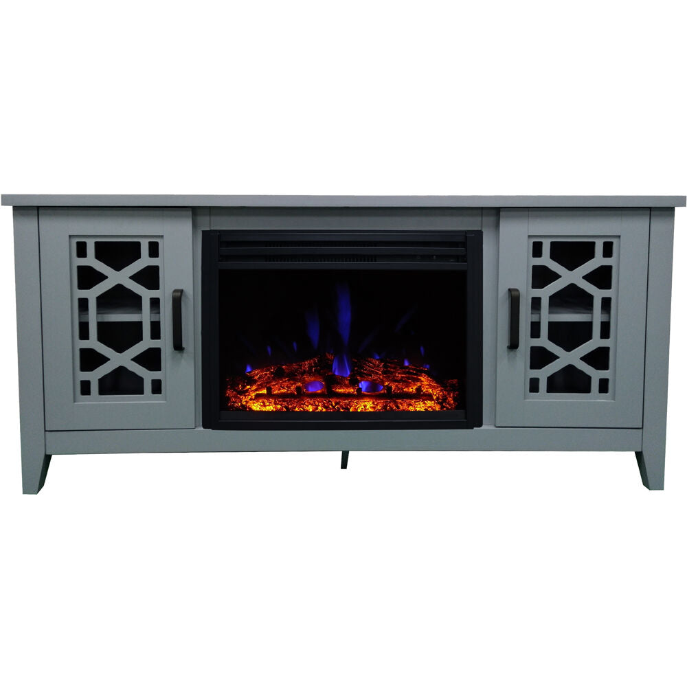 Cambridge 56-in. Stardust Mid-Century Modern Electric Fireplace with Deep Multi-Color Log Insert, Slate Blue