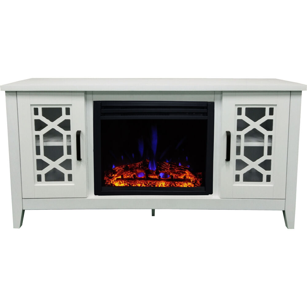 Show off your mid-century modern flare with this stylish Stardust Electric Fireplace. The fireplace is paired with an enhanced, realistic log insert to allow for your home to have the feel of a real fireplace without the hassle and maintenance of one. The dual heat settings can be adjusted accordingly for both warmth and energy-saving purposes. The fireplace can be used with or without heat, so you are able to enjoy the ambiance of your fireplace all year round. Cambridge's retro, fun, modern mid-century TV stand comes equipped with unique cutout pattern doors and sleek lines that are the perfect addition to any household's decor. It includes a remote controller for your convenience in adjusting the settings from across the room. Two people are recommended to assemble this electric fireplace and TV stand.