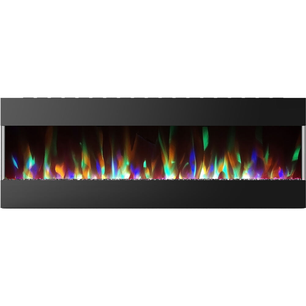 Cambridge 60 In. Recessed Wall Mounted Electric Fireplace with Crystal and LED Color Changing Display, Black