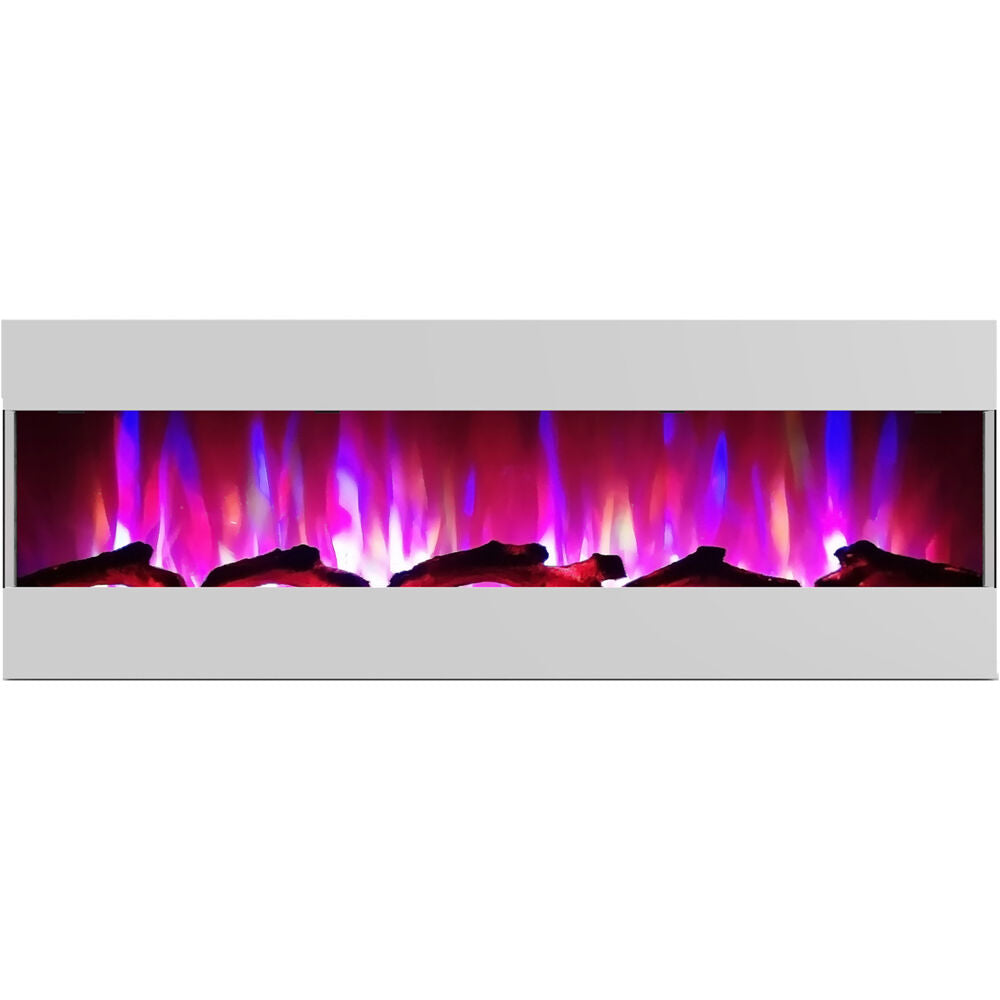 Cambridge 60 In. Recessed Wall Mounted Electric Fireplace with Logs and LED Color Changing Display, White