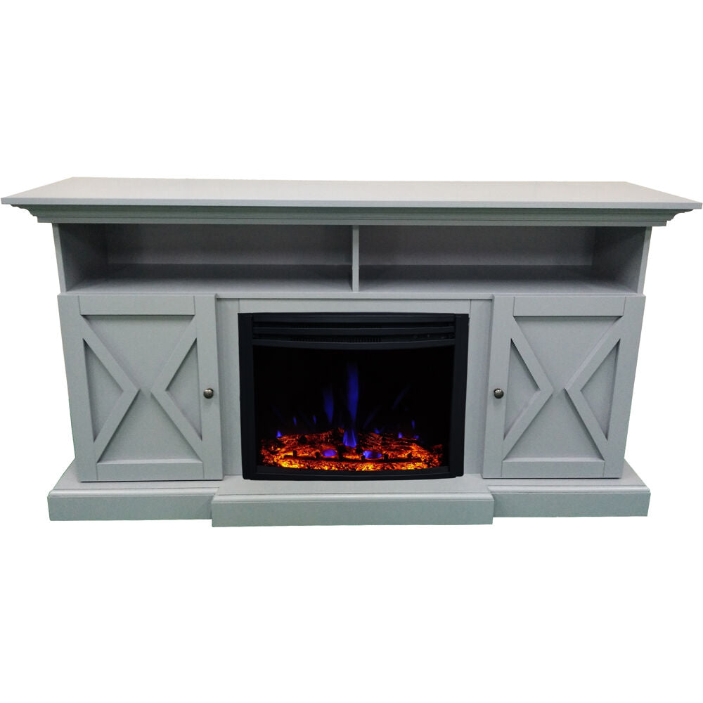 Cambridge 62-in. Summit Farmhouse Style Electric Fireplace Mantel with Deep Log Insert,Slate Blue