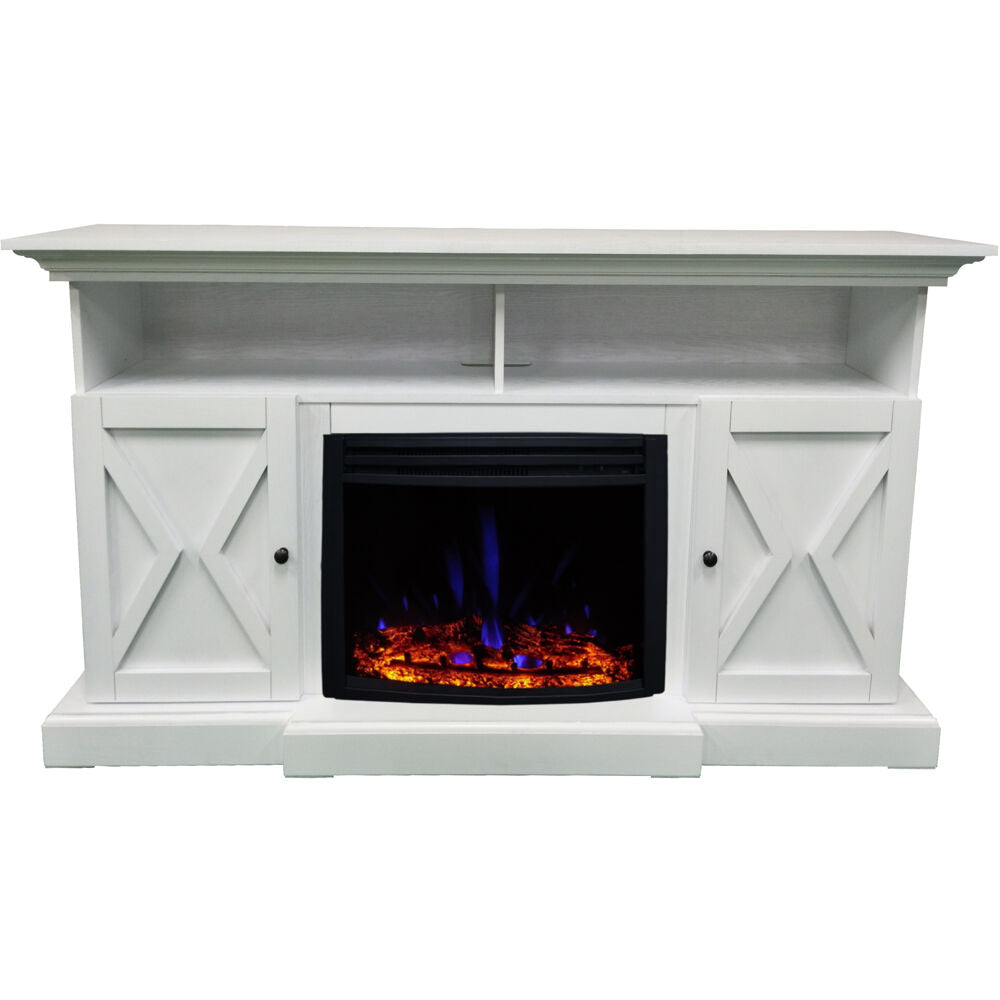 Cambridge 62-in. Summit Farmhouse Style Electric Fireplace Mantel with Deep Log Insert, White