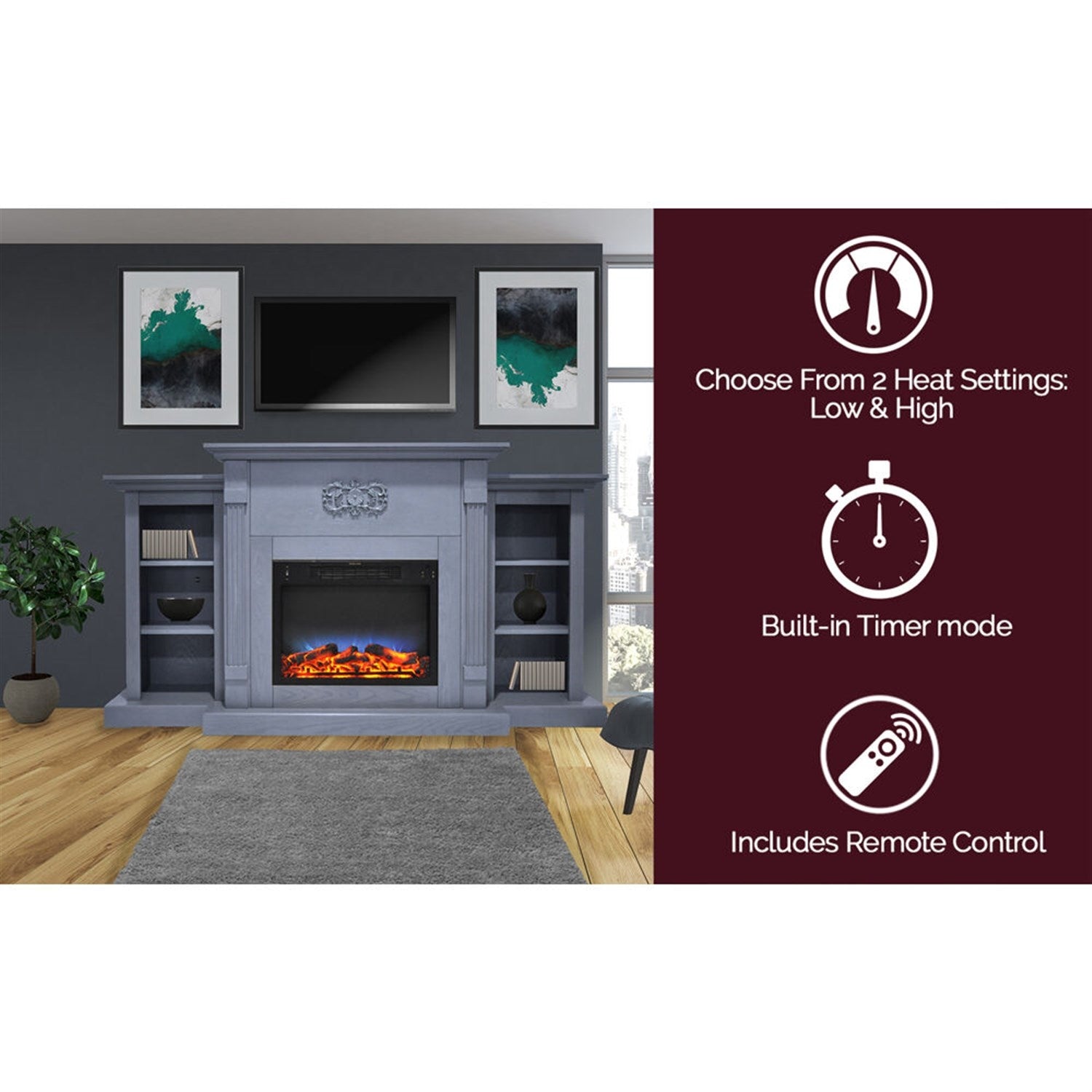 Electric fireplaces are an easy way to add warmth and character to your home. If you are looking for an multi-functional statement piece, the Sanoma Fireplace is perfect for you. Two side bookshelves balance the middle frame that hosts the fireplace insert. These shelves, along with the long mantel top, provide plenty of space for displaying books and decor. A Gothic floral appliqu, is carved across the top of the fireplace, giving it a classic and traditional look. The clean lines, fluted pilasters, and crown molding are a few of the design details that add even more character to the frame. The multi-color LED insert produces 5,115 BTUs of fan-forced heat that quickly warms a 210 sq. ft. room. An enchanting flame display dances across the back of the firebox, creating movement that is sure to catch your eye. Embers of light glaze across the logs within, adding more depth to the realistic log display. With the Sanoma fireplace, comfort never looked so good!
