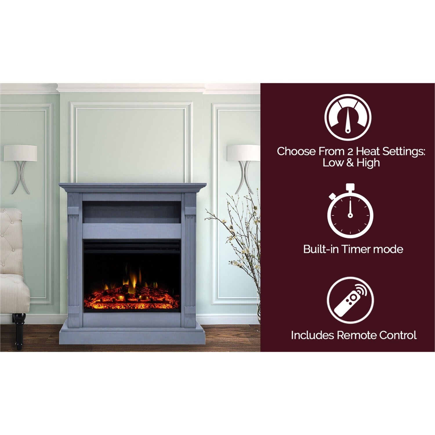 The Sienna electric fireplace offers the perfect blend of style and functionality to any room it's placed in. Its slim frame is made out of a sturdy MDF material that is available in eight stunning finishes. The clean lines, fluted pilasters, and crown molding are a few of the design details that add character to the frame. The electric fireplace insert produces 5,115 BTUs of fan-forced heat that can quickly warm a 210 sq. ft. room. A realistic, multi-color flame display dances across the back of the firebox, creating movement that is sure to catch your eye. Embers of light glaze across the logs within, adding highlights throughout the realistic log display. The heat settings can be adjusted with a simple push of a button and during the warmer months, you can set the flames to display without heat - making it perfect to use all year long.