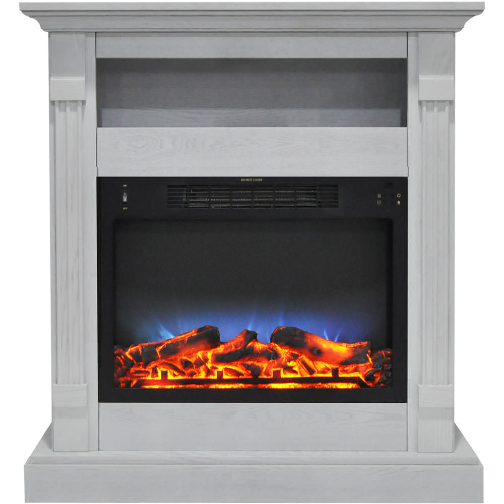 • Sienna 34 in. electric fireplace with multi-color flame display and White mantel