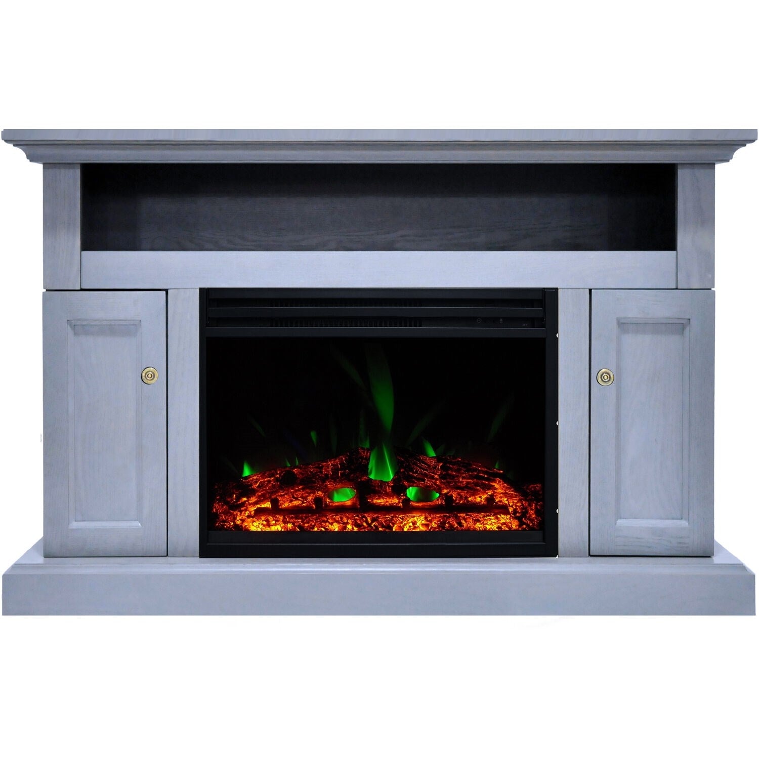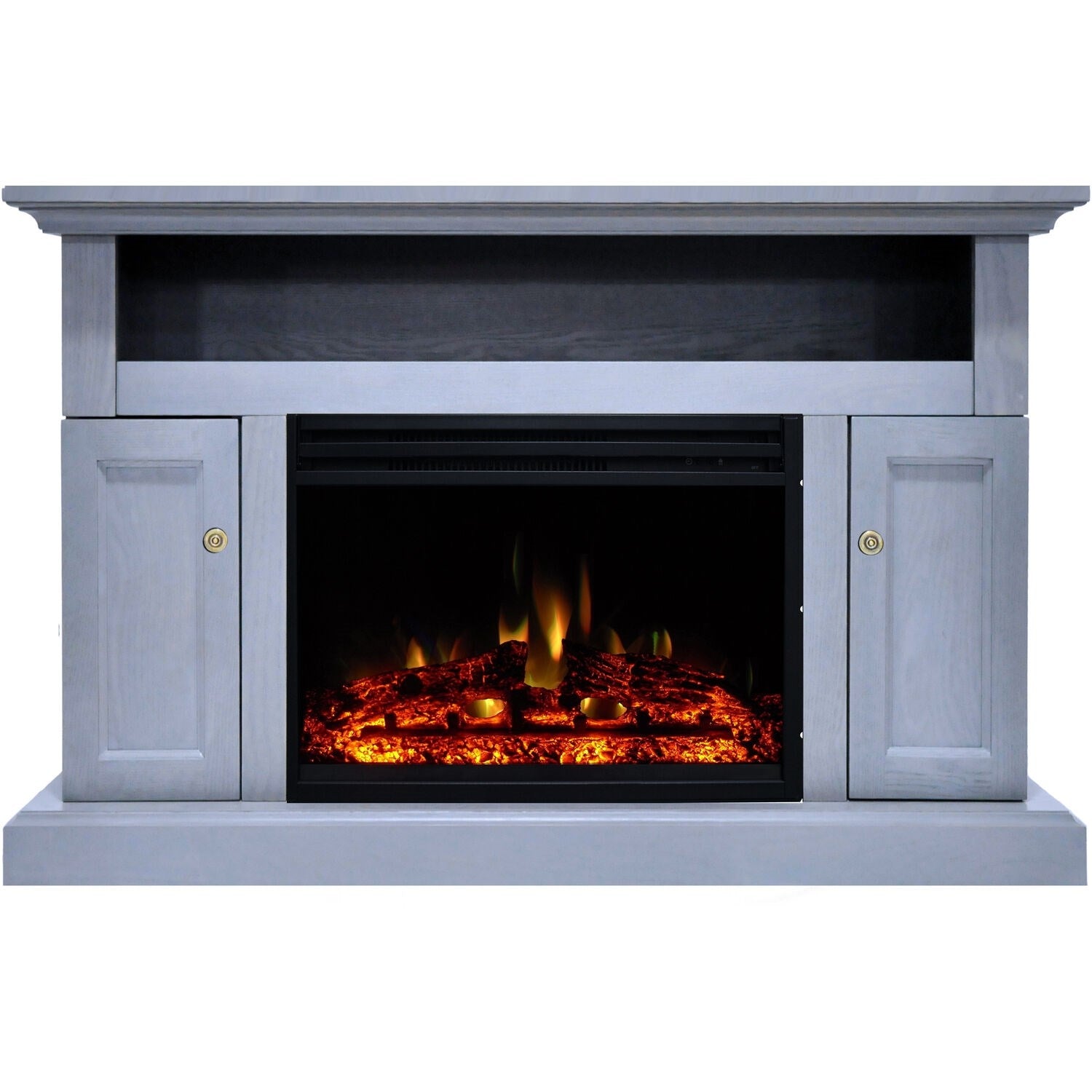 Enjoy comfortable warmth anywhere in your home with the Sorrento electric fireplace. The forced-air electric heater insert features 2 heat settings, timer and handy remote control. With log and flame effect, this transitional unit gives you the cozy ambiance of a traditional fireplace without smoke or a mess.The full-surround mantel also functions as a TV stand. The mantel top accommodates up to a 50-in. TV, an open shelf houses electronic components, plus space-saving storage compartments hidden behind cabinet-style doors provide room for games and DVDs. The enhanced log insert produces 5,115 BTUs of fan-forced heat that quickly warms a 210 sq. ft. room. A multi-color flame display dances across the back of the firebox, creating movement that is sure to catch your eye. Embers of light glaze across the logs within, adding more depth to the realistic log display. The brightness, color and heat settings can be adjusted at the push of a button and it's perfect for use throughout the year!