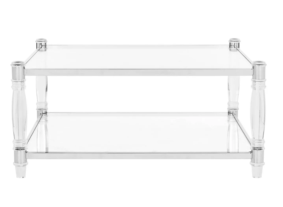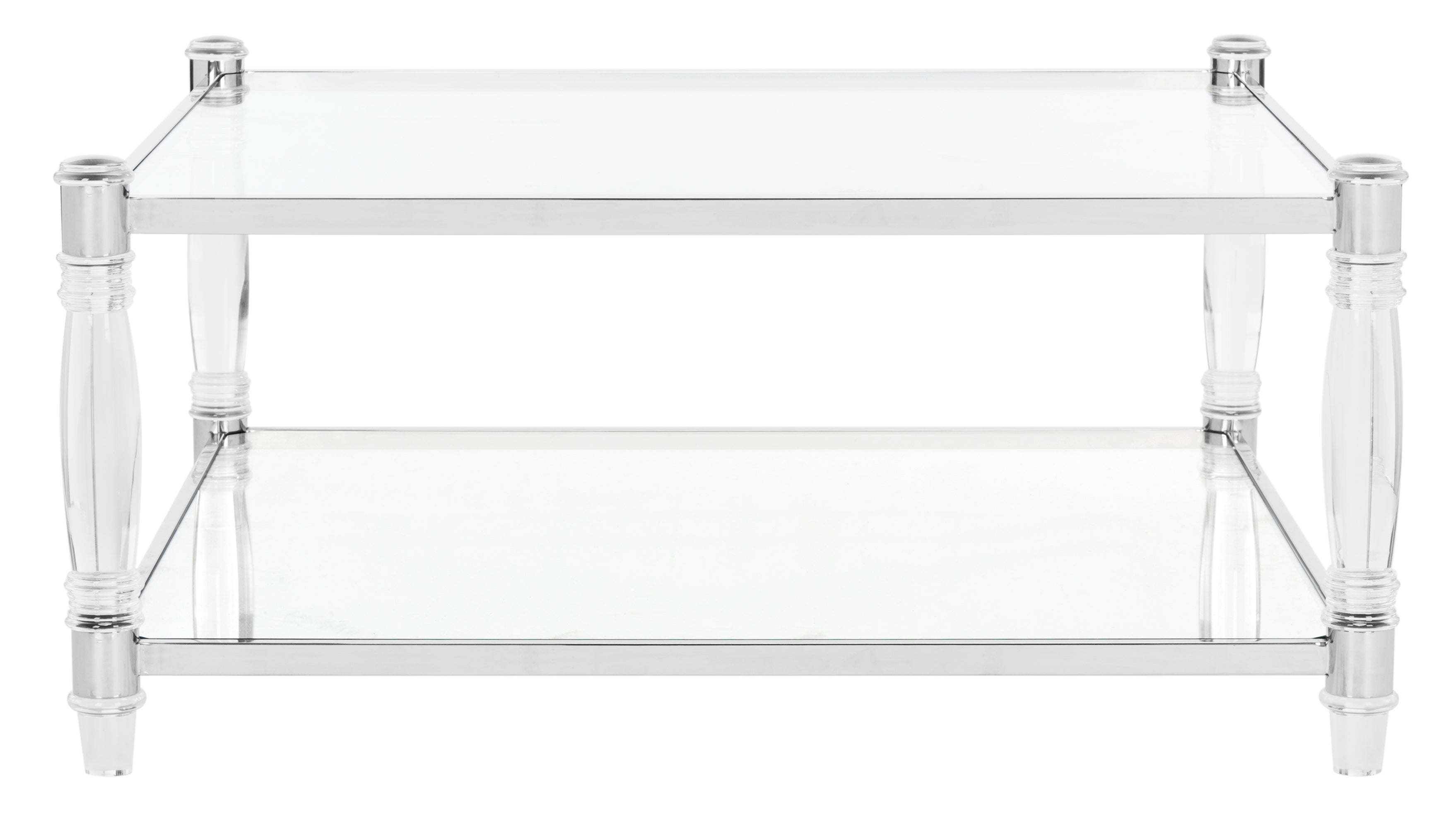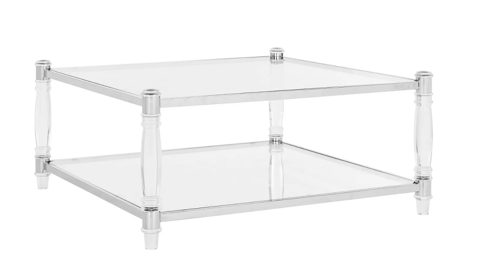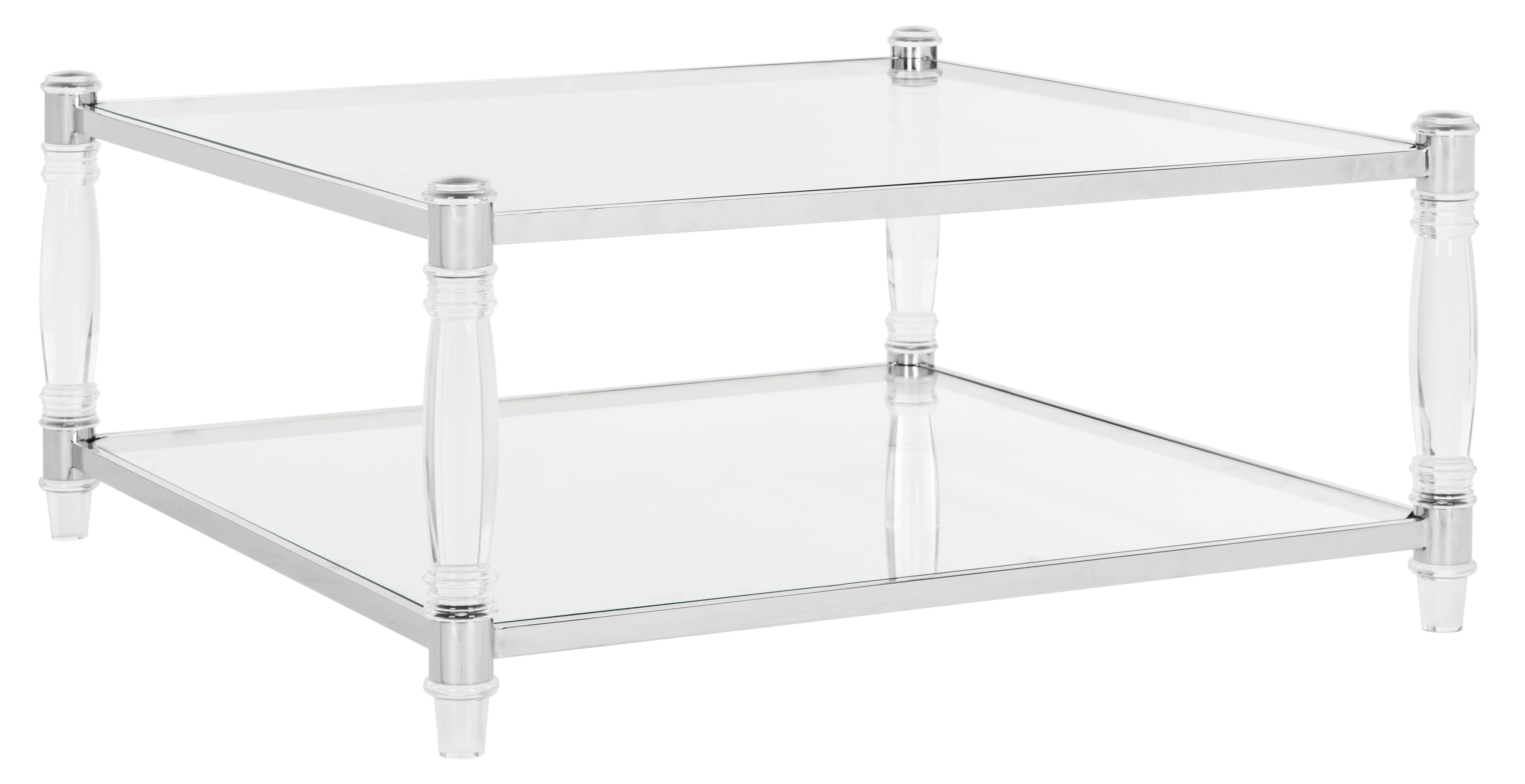 This Cameron Coffee Table brings cosmopolitan couture style to any contemporary interior. The chic chrome details pair beautifully with the cool, breezy ambiance delivered by Cameron’s sculpted acrylic legs and clear glass surfaces. Created for those with a collector’s eye.