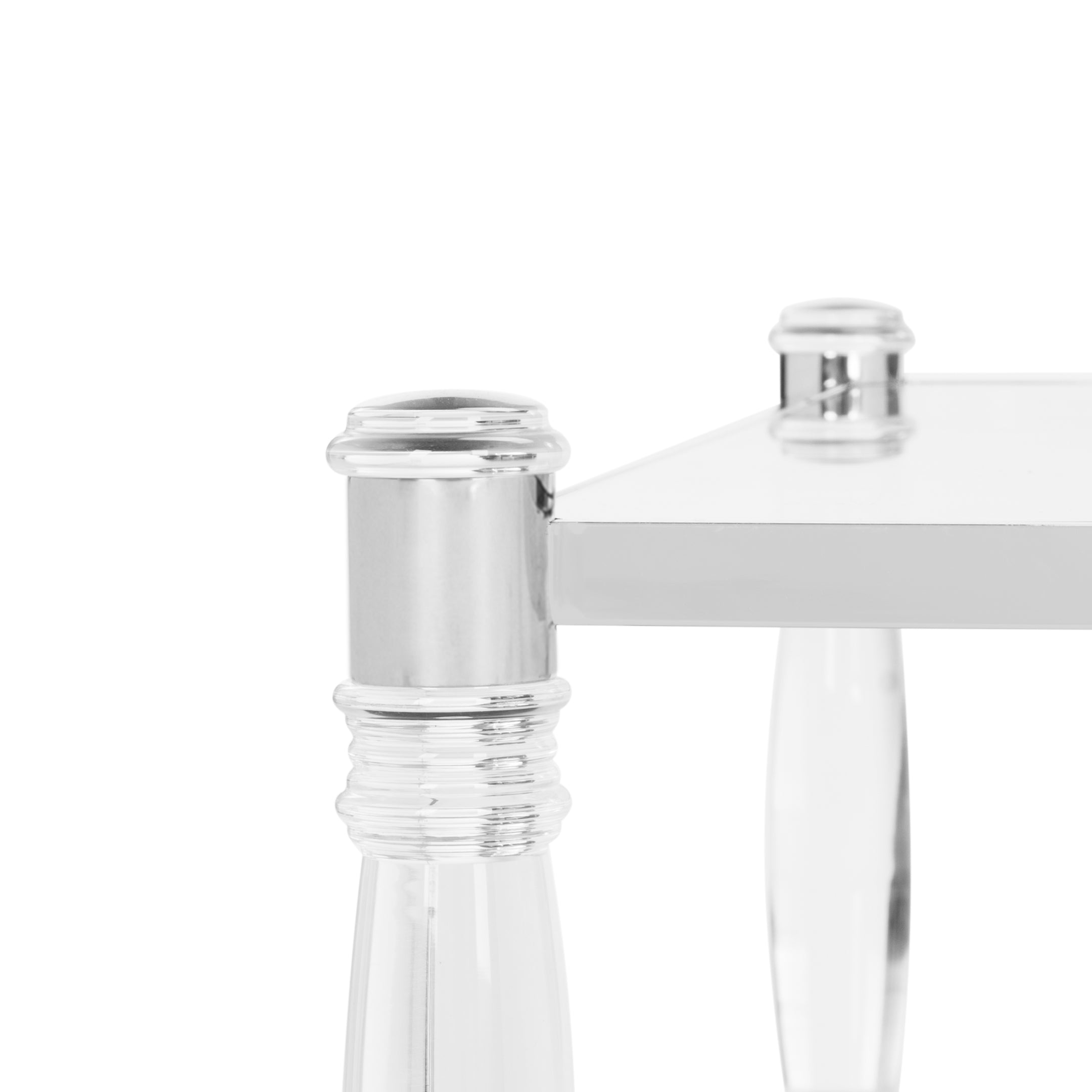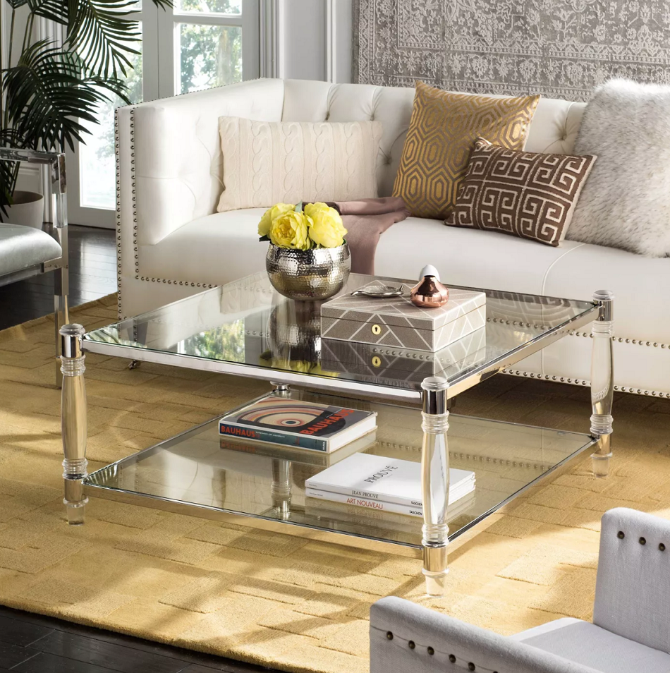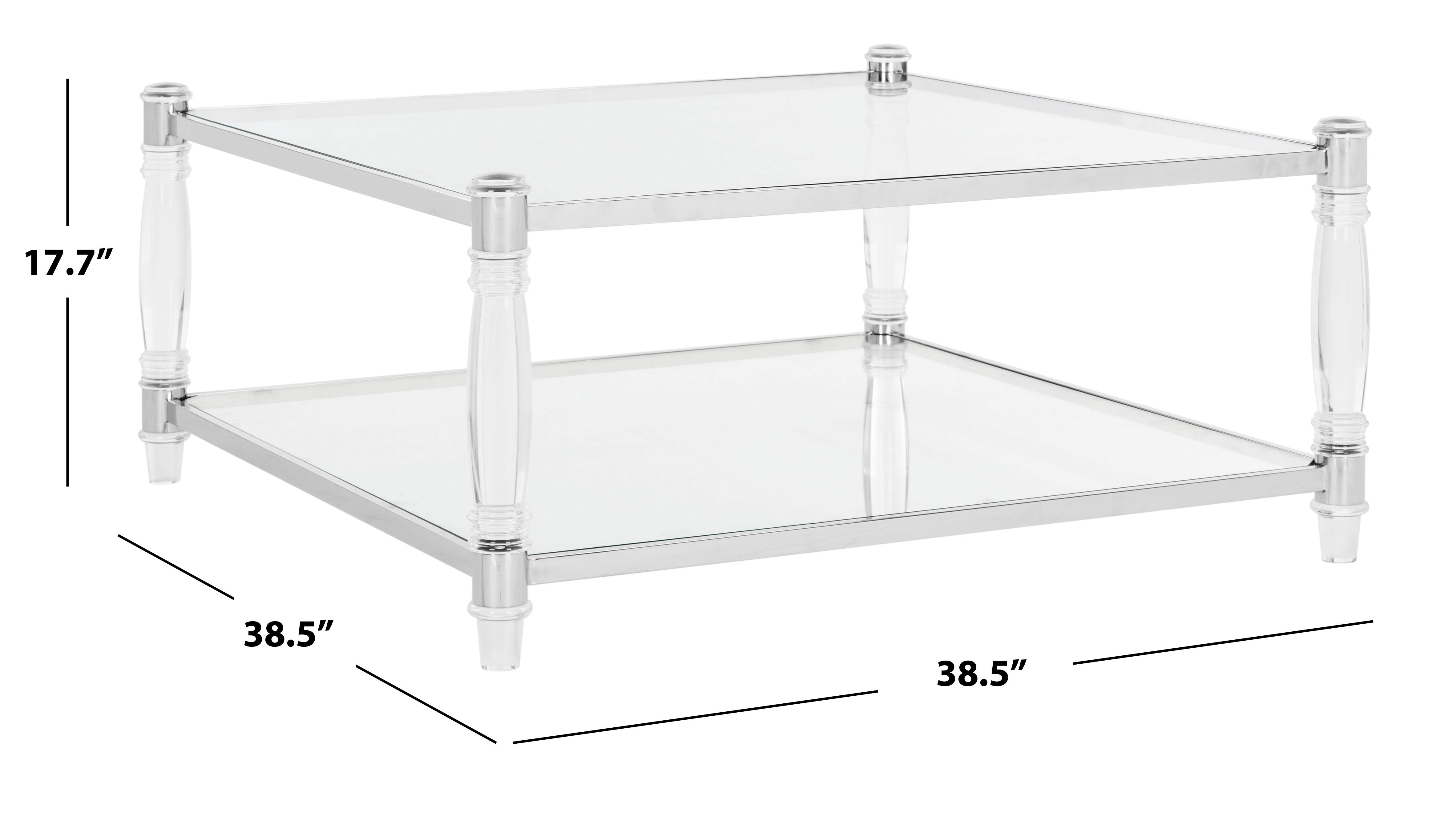 This Cameron Coffee Table brings cosmopolitan couture style to any contemporary interior. The chic chrome details pair beautifully with the cool, breezy ambiance delivered by Cameron’s sculpted acrylic legs and clear glass surfaces. Created for those with a collector’s eye.