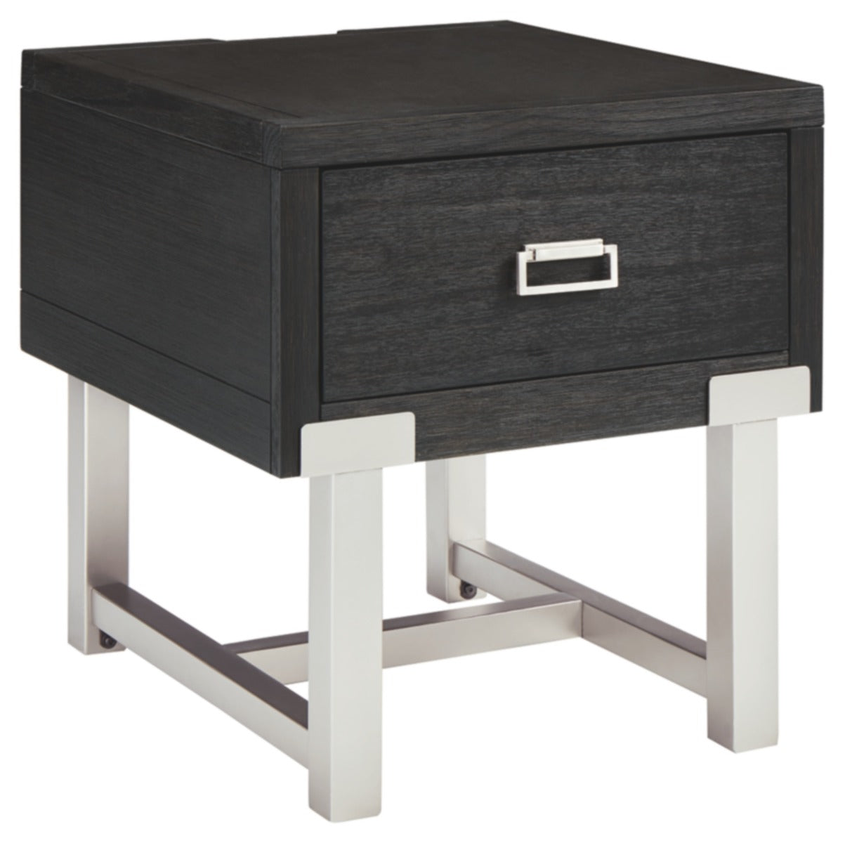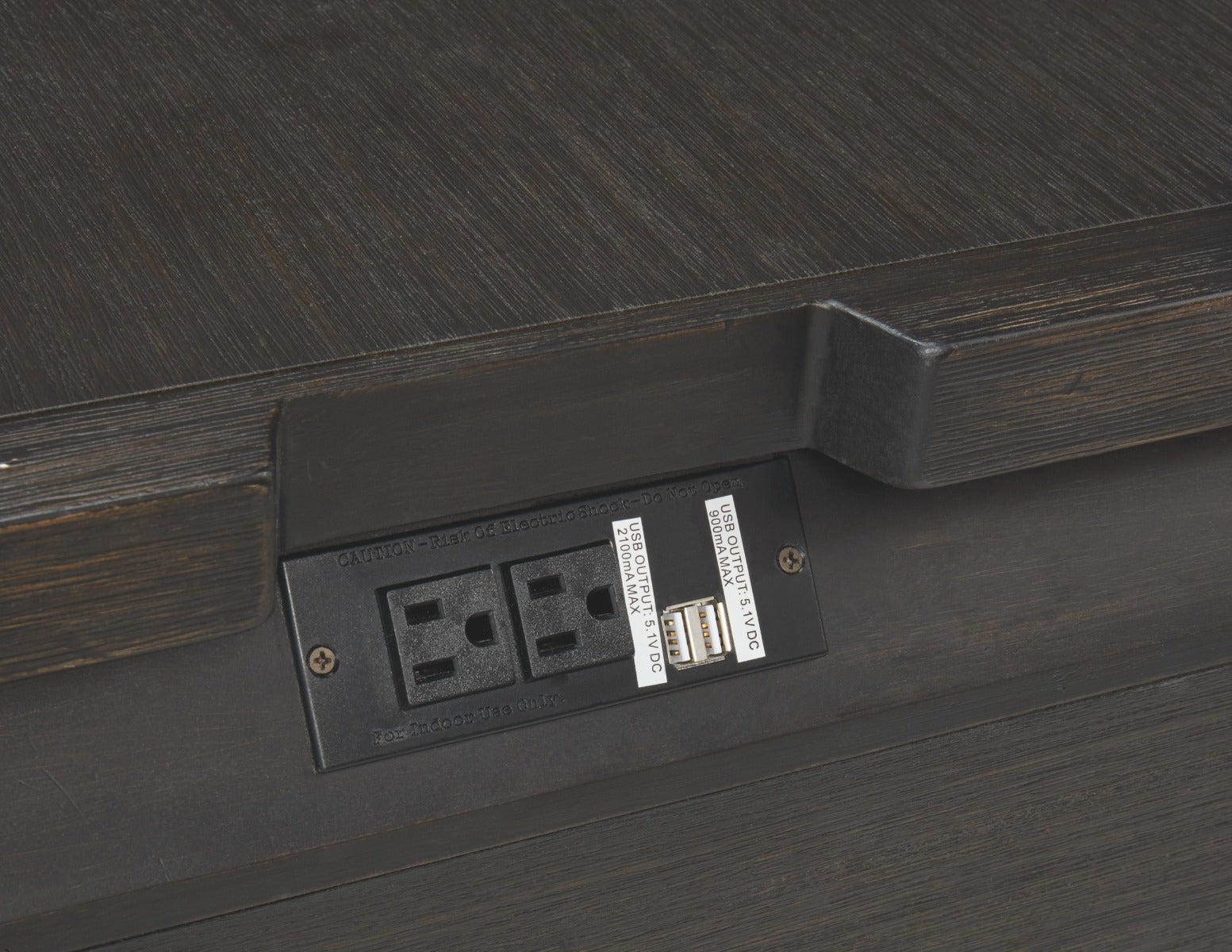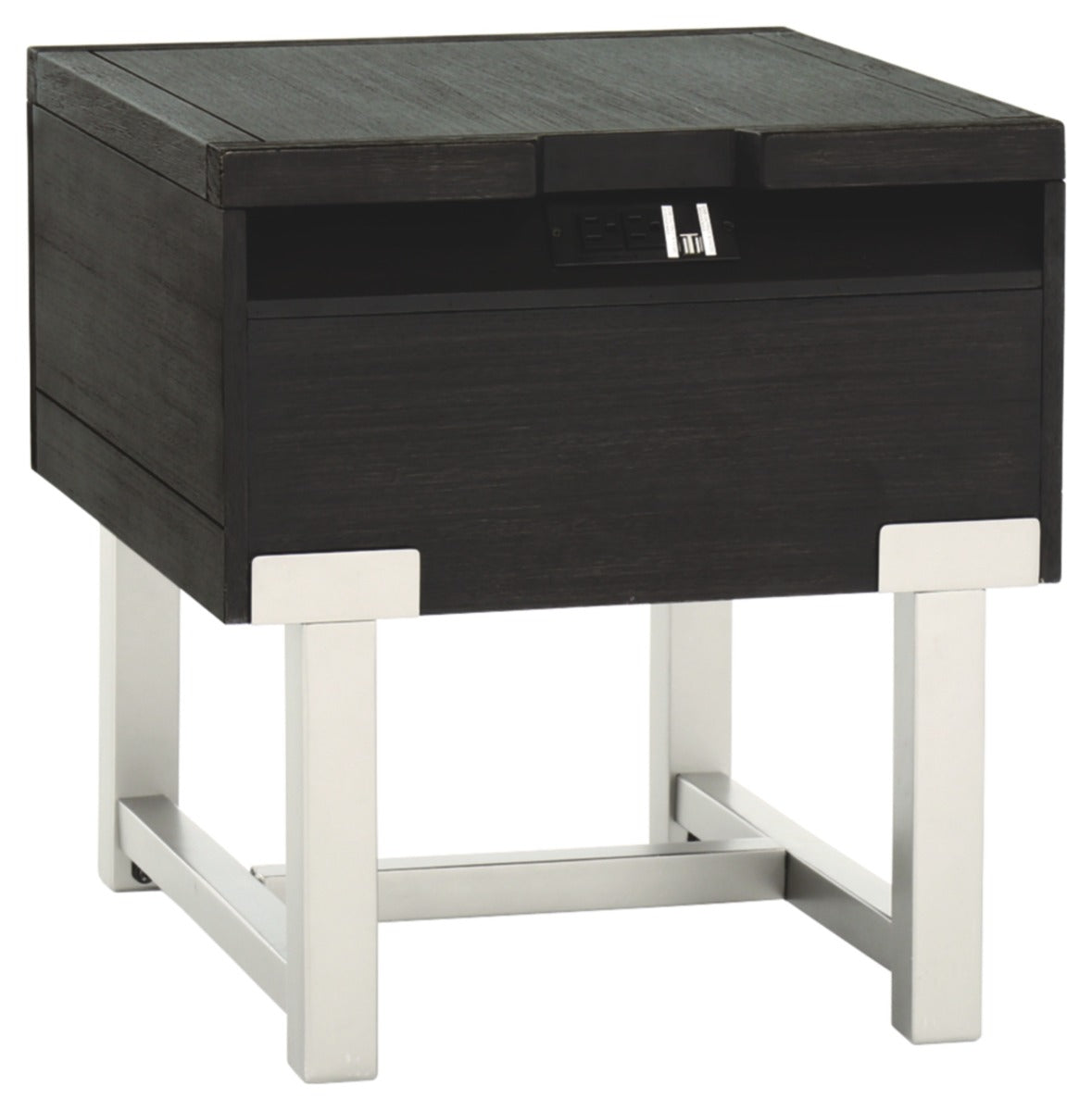 Give your living space the sleek, contemporary touch you’ve been longing for with this end table. Chic and understated, the table’s textured blackened wood finish is paired with bright nickel-tone metal for striking contrast. Industrial hardware on the deep drawer takes the cool factor up a notch. Integrated power outlets and USB charging ports merge form and function.