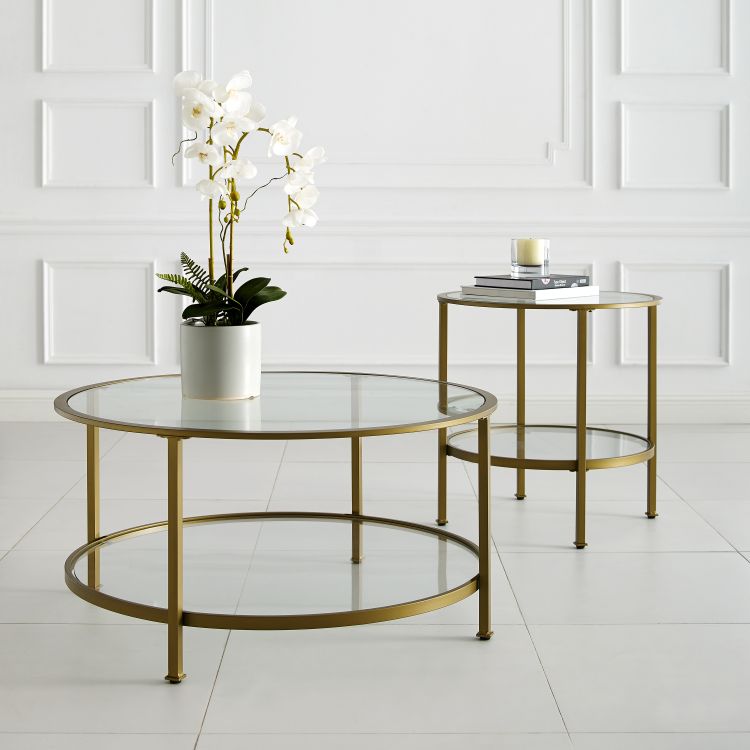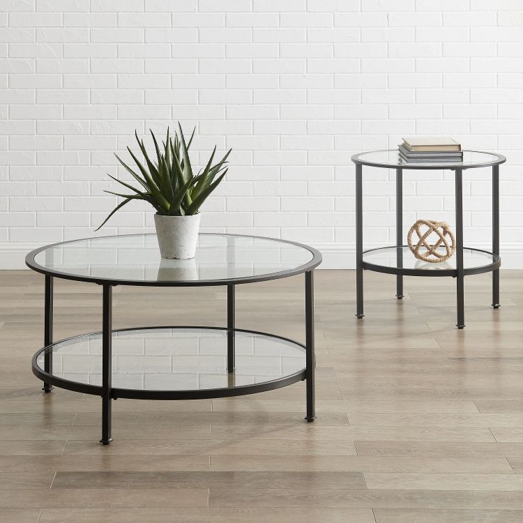Bring a fashionable and cohesive look to any living space with the Aimee 3pc Occasional Table Set. With sleek steel frames and tempered glass on the tops and shelves, these tables can coordinate with a variety of décor without overwhelming the space. Featuring a round end table and coffee table, this occasional set will complete your home's style with a modern edge.