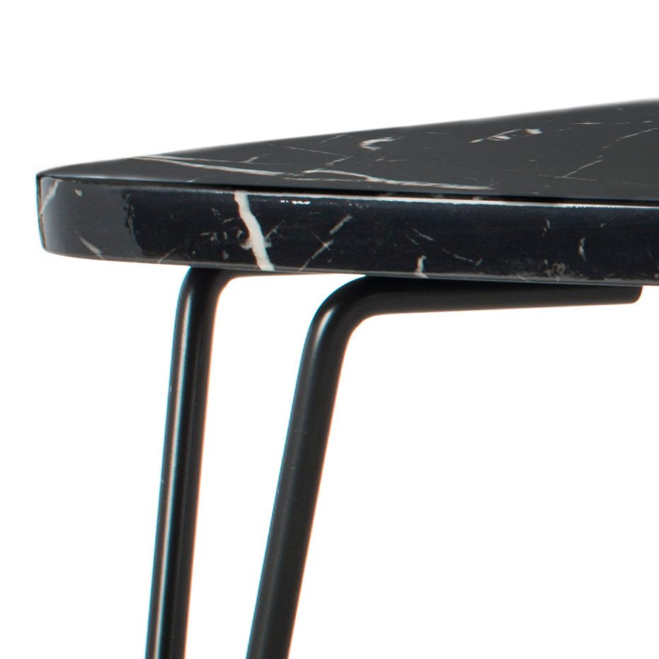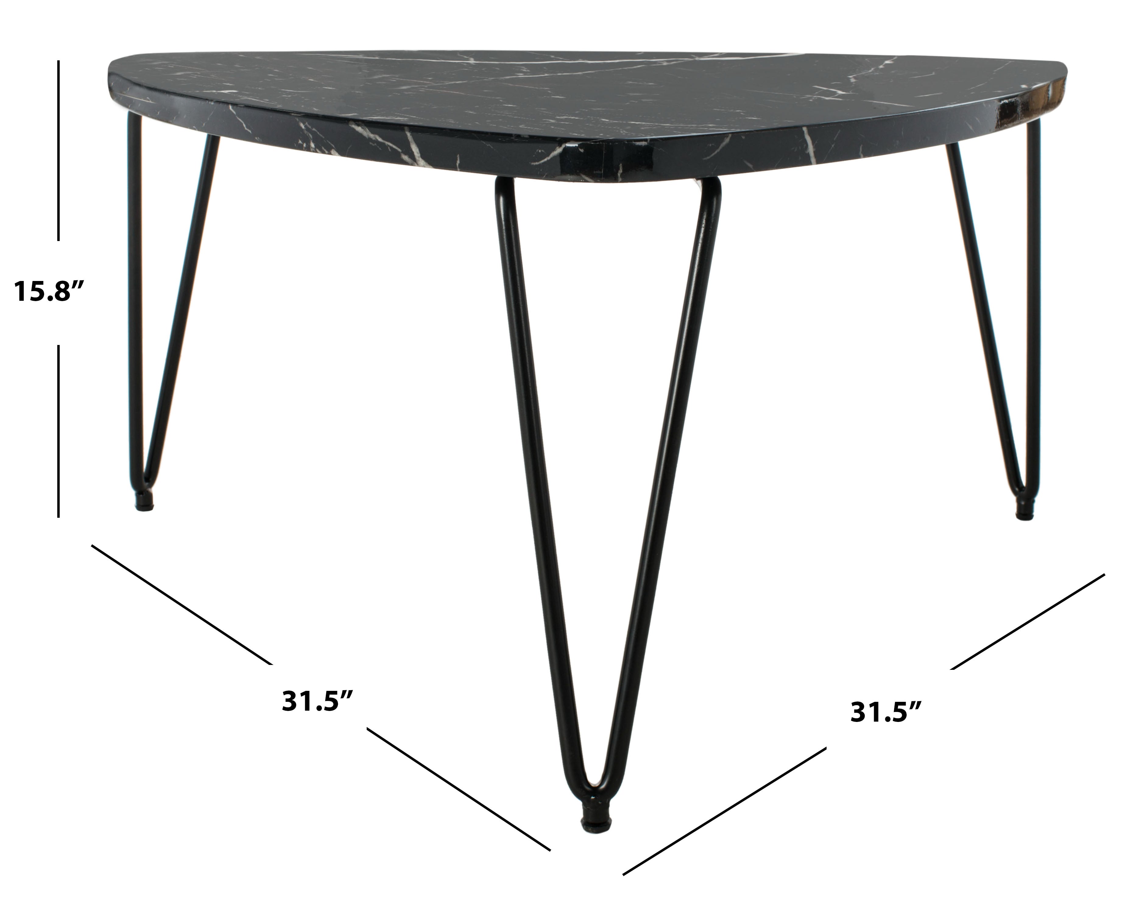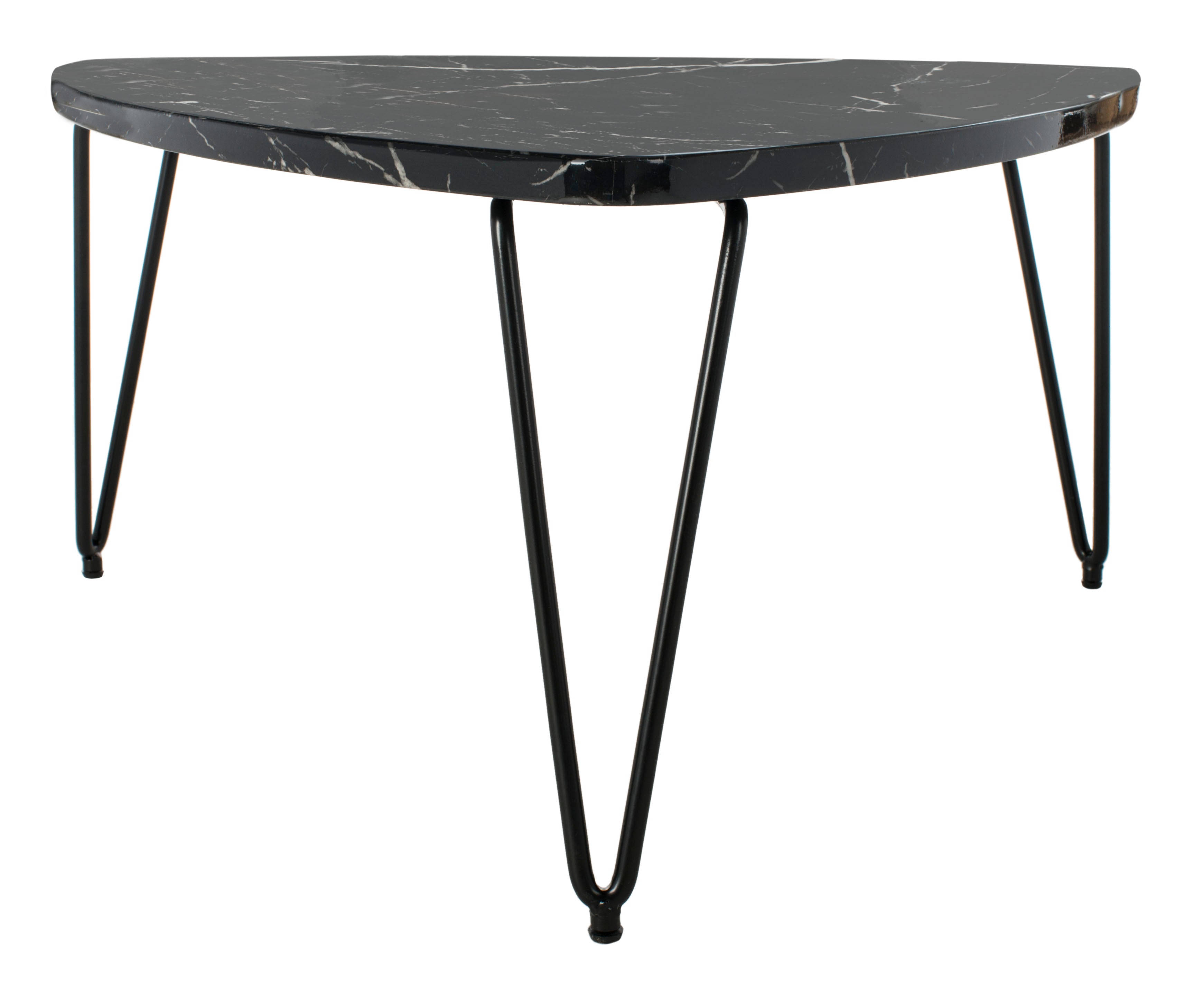 Inspired by vintage Italian design, this contemporary triangle coffee table brings elegant style to any living room with its minimalist curves. Its durable resin design features a classic black marble finish and mod hairpin legs.