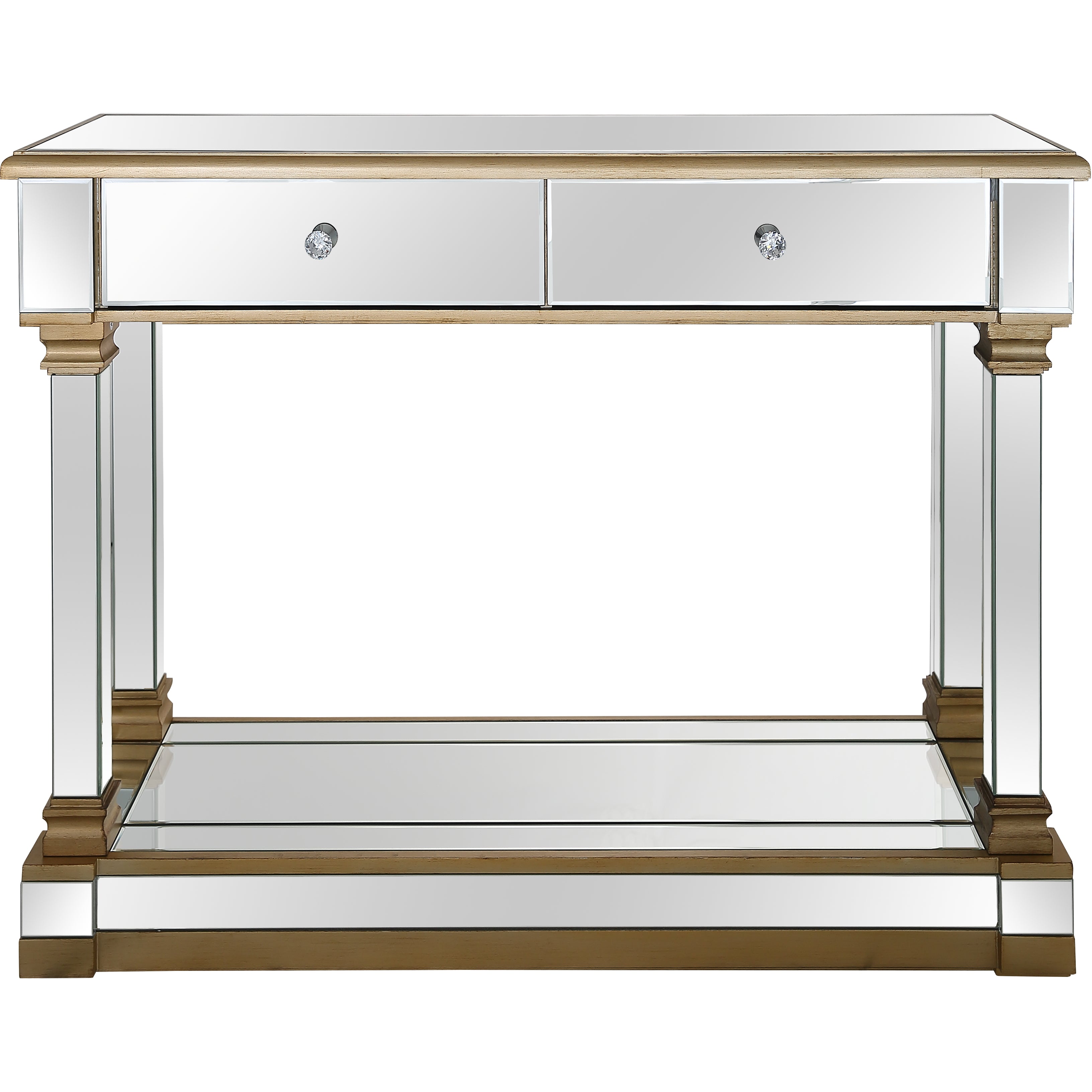 There is no shortage of space with the Declan Console. Add modern lamps to the surface, treasured heirlooms in the drawers, or beautiful decorative elements to the lower shelf. The head-to-toe mirrored finish with gold accents is a show stopper and deserves a prime location in your home.
