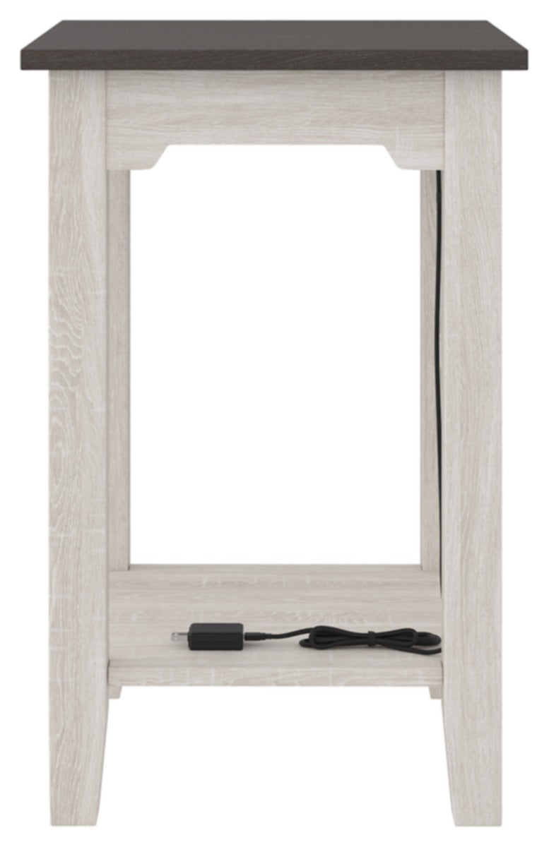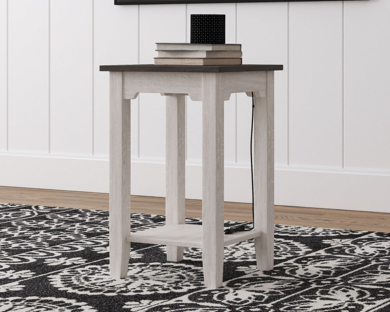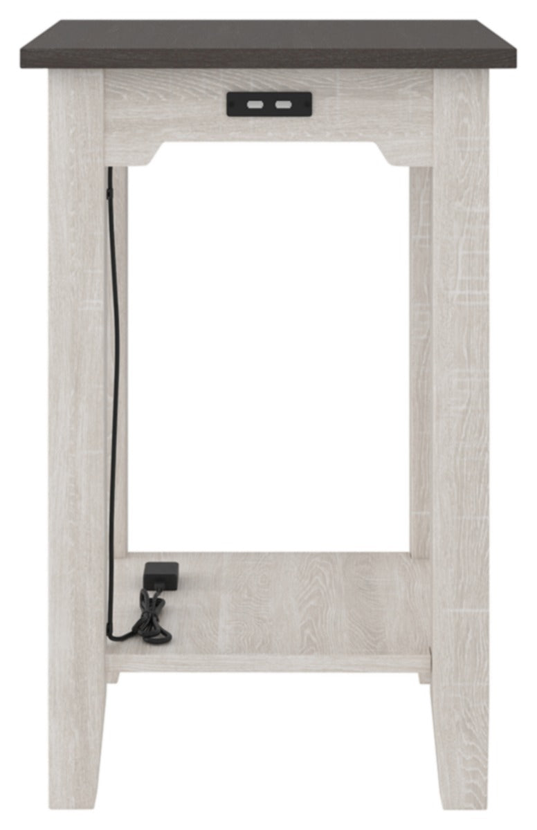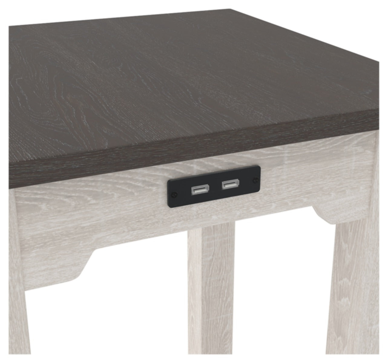 Raise the bar on modern farmhouse design with this versatile side table. Sporting a two-tone, gray and antiqued white color scheme, this piece makes a statement wherever it lands. With its dual USB charging ports, this home essential is packed with possibilities.