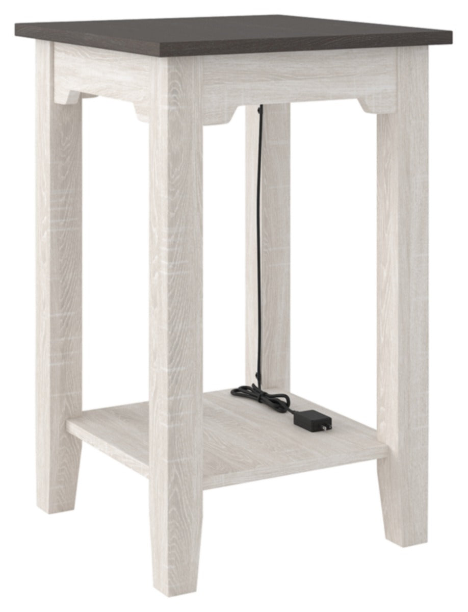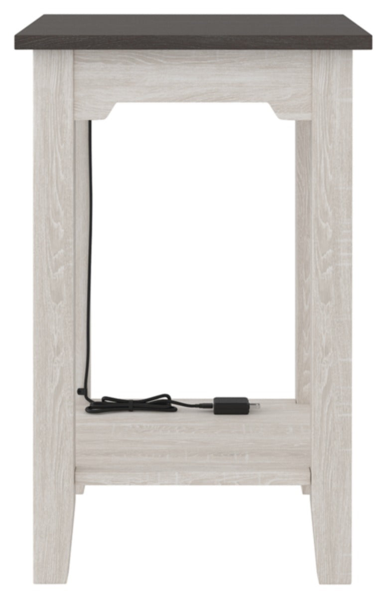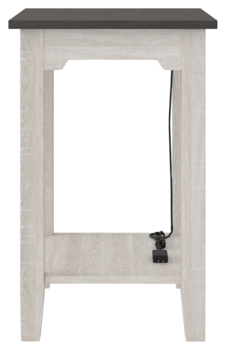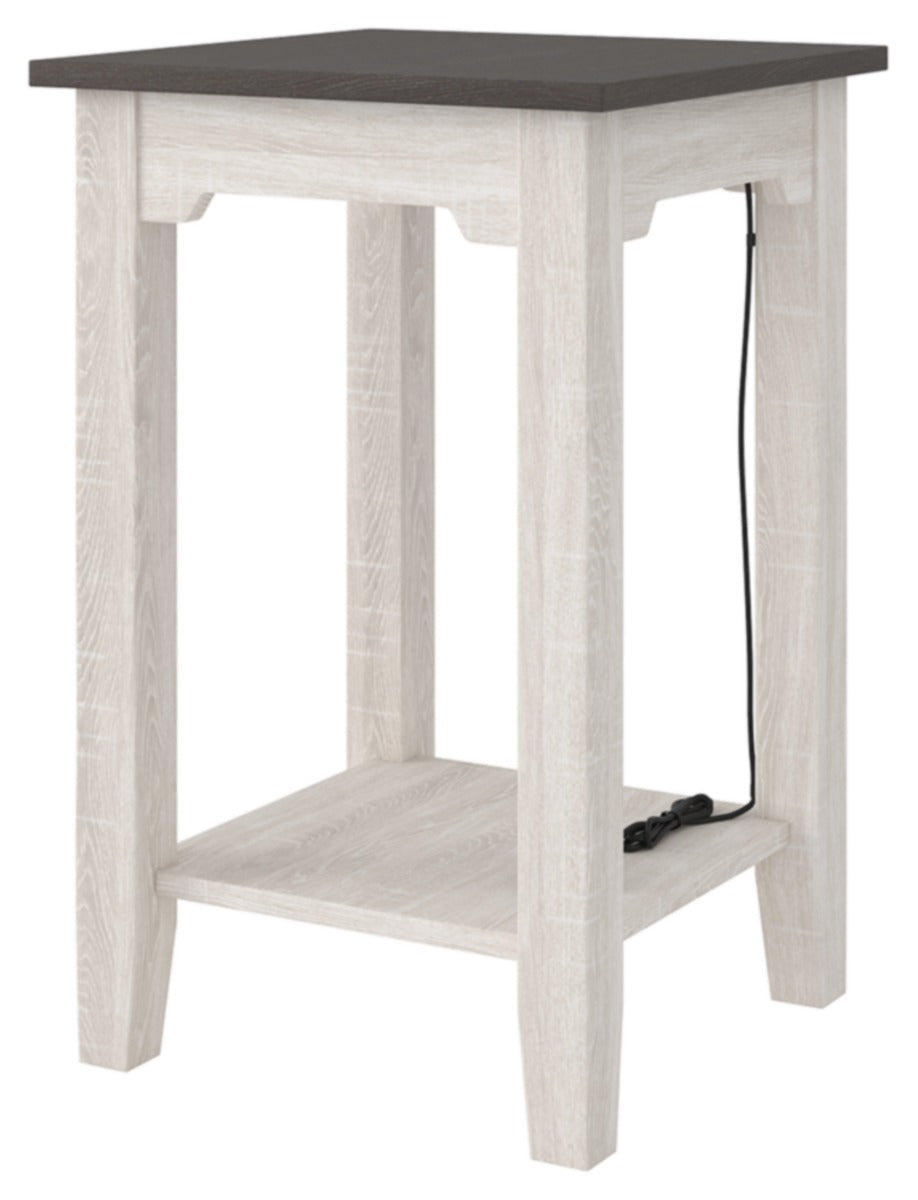 Raise the bar on modern farmhouse design with this versatile side table. Sporting a two-tone, gray and antiqued white color scheme, this piece makes a statement wherever it lands. With its dual USB charging ports, this home essential is packed with possibilities.
